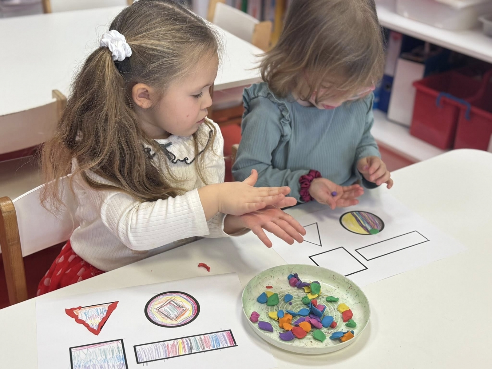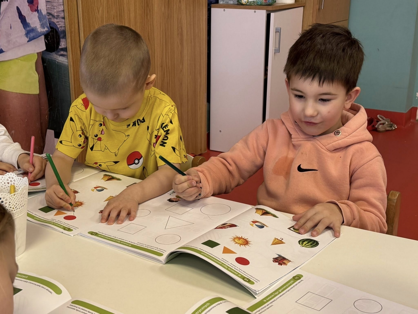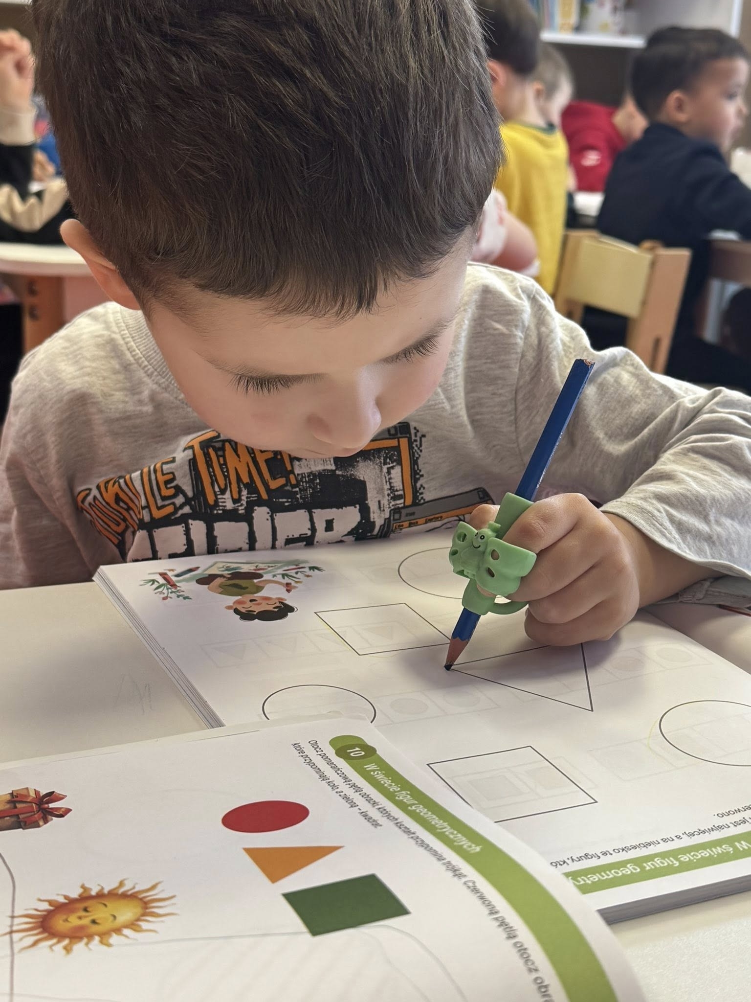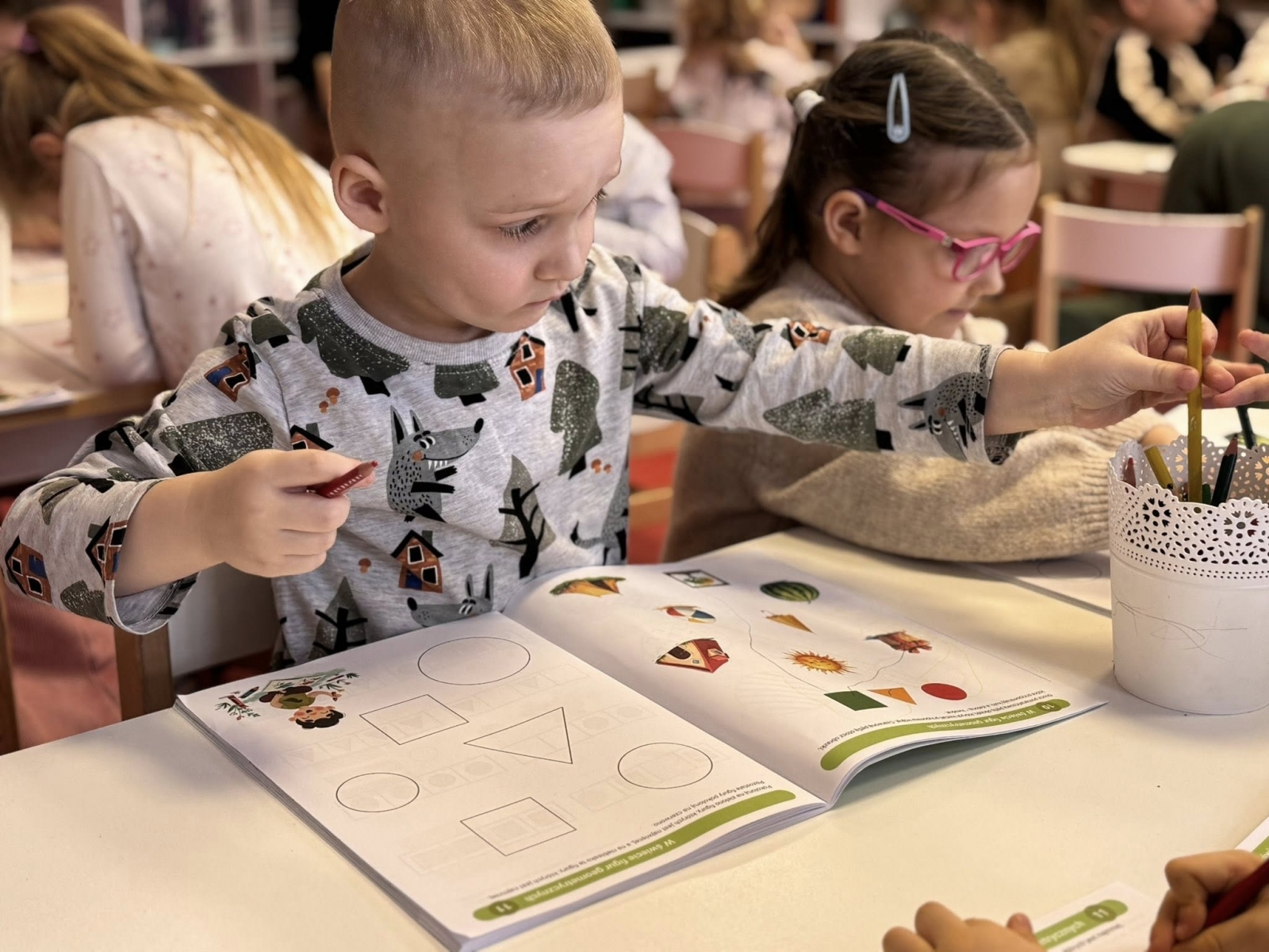 Równie intensywnie pracują średniaki w Żłobku, Przedszkolu i Zerówce Mały Europejczyk w Elblągu, które skupiły się na utrwalaniu kształtów. Tutaj geometria nabrała barw i humoru – dzieci tworzyły kontury figur z plasteliny, nadając im cechy wesołych „stworków”. Dzięki łączeniu pracy manualnej z rozpoznawaniem kształtów w otaczającym świecie, przedszkolaki uczą się koncentracji i precyzji, tak niezbędnych w późniejszej edukacji.