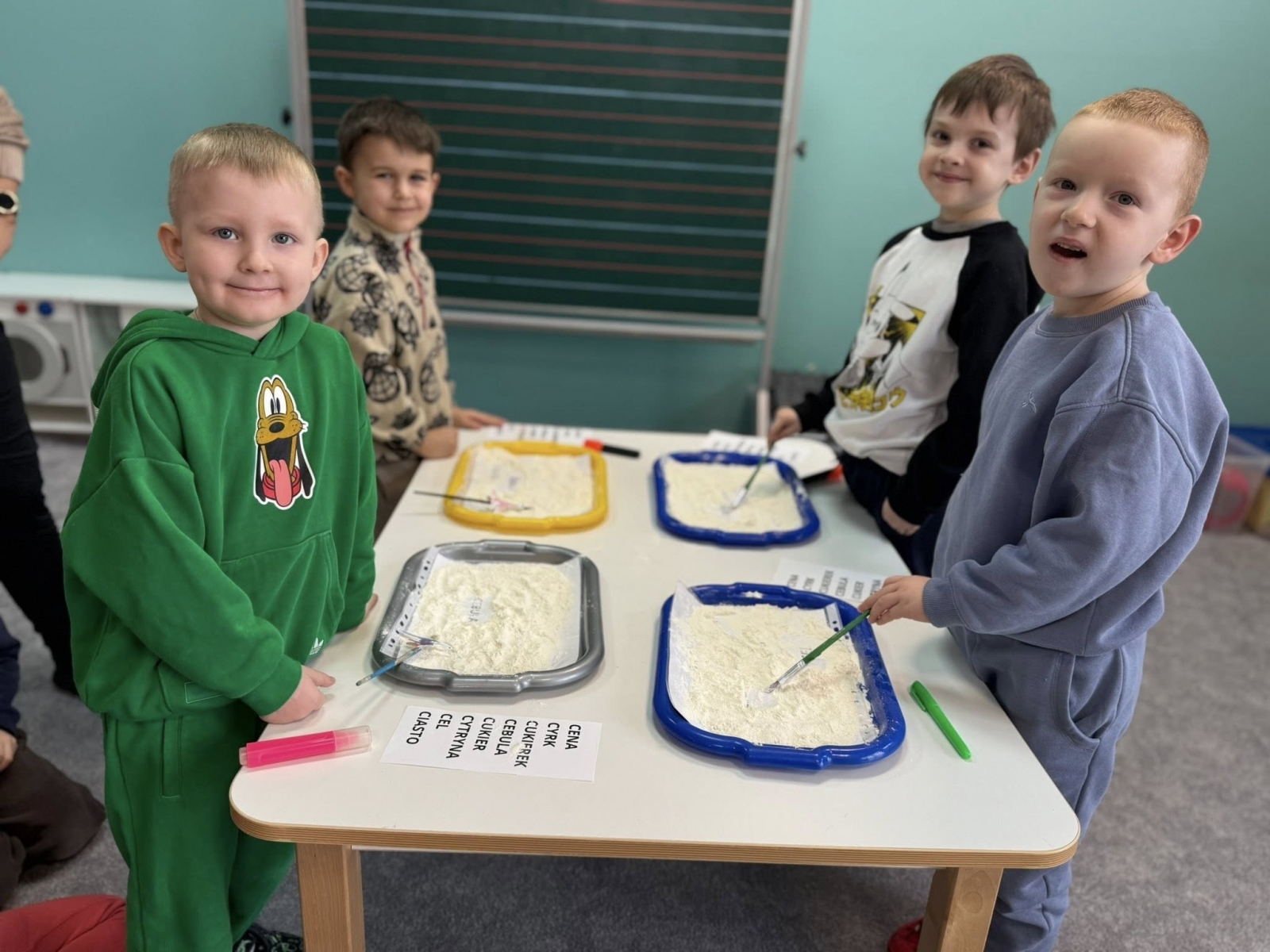 W grupie starszaków naszego przedszkola w Elblągu nauka czytania i pisania przybrała formę prawdziwej ekspedycji. Główną bohaterką ostatnich dni została litera „C” jak cytryna. Dzieci nie ograniczyły się jedynie do rysowania jej kształtu w zeszytach. Jako mali odkrywcy przeczesywały misy wypełnione mąką w poszukiwaniu ukrytych słów, trenując przy tym spostrzegawczość.