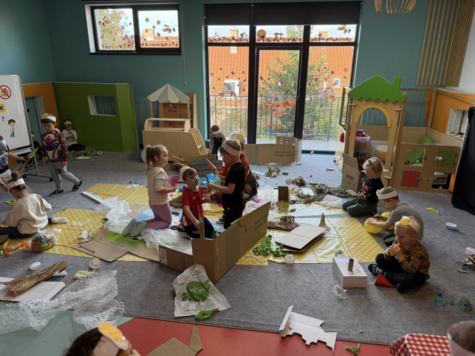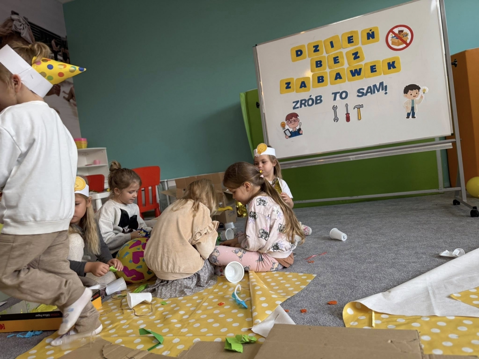 W Żłobku, Przedszkolu i Zerówce Mały Europejczyk w Elblągu zakończenie tygodnia wynalazków i technologii miało wyjątkowy charakter. Zamiast tradycyjnych zabawek, dzieci otrzymały coś znacznie cenniejszego – przestrzeń do twórczego działania i pełną swobodę wyobraźni. Dzień bez zabawek to nie tylko zabawa, ale przede wszystkim ważna lekcja samodzielności, kreatywności i współpracy.