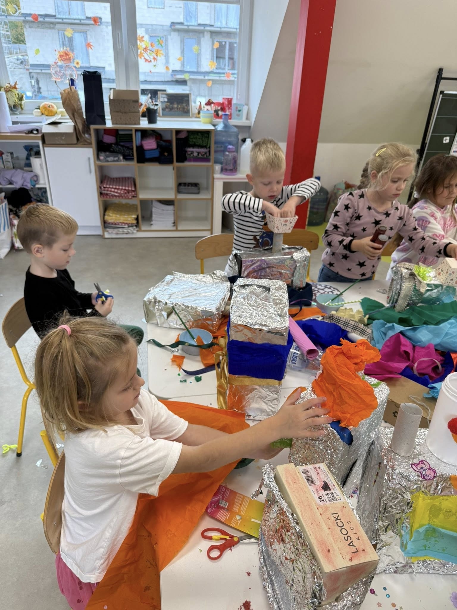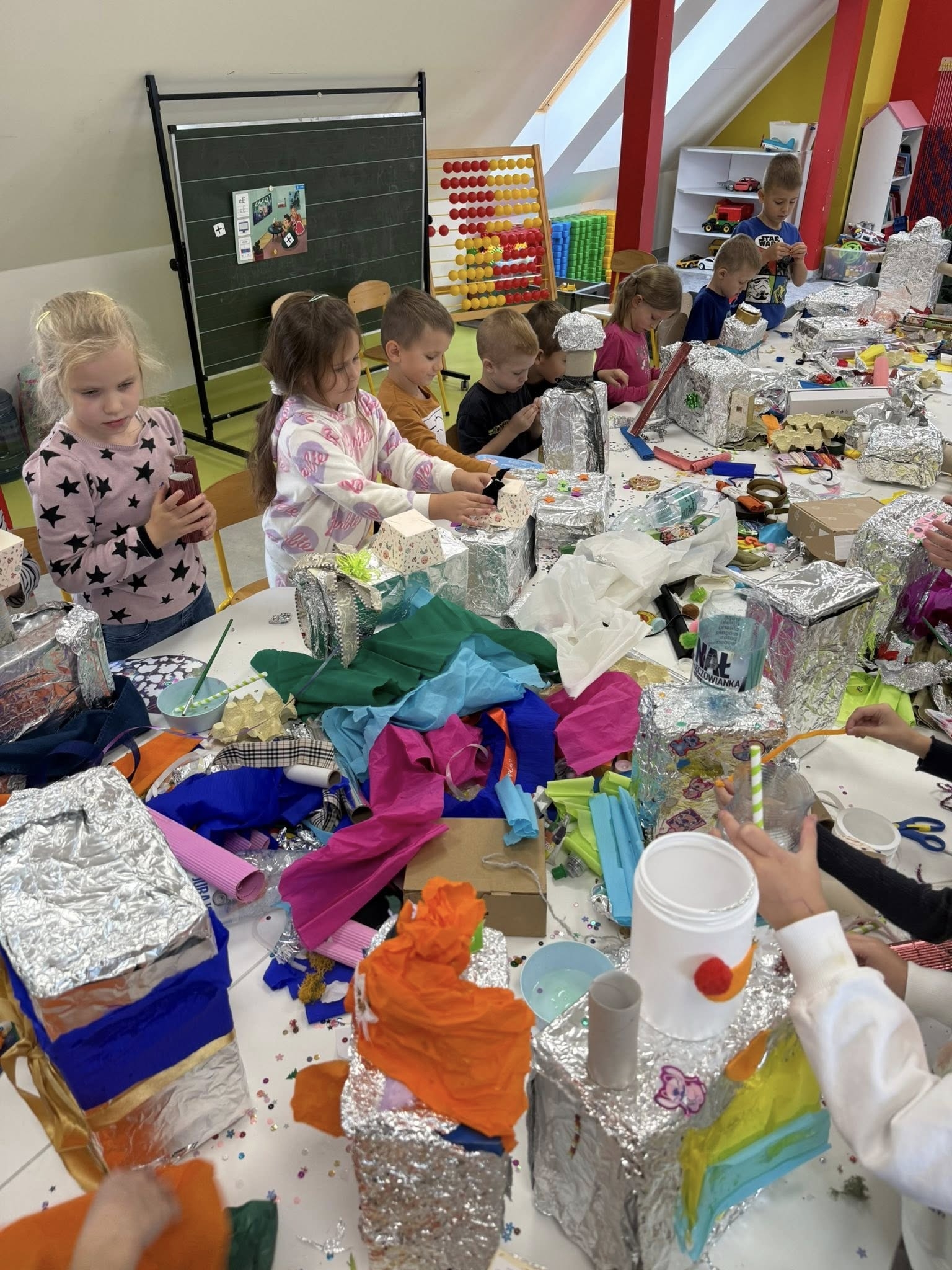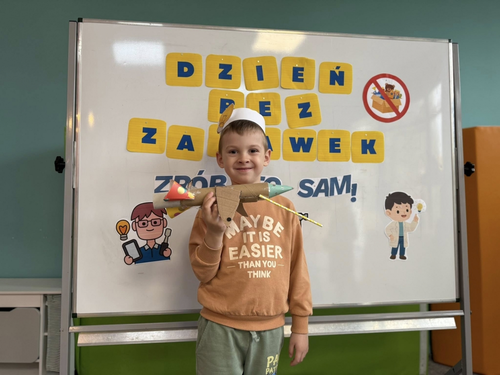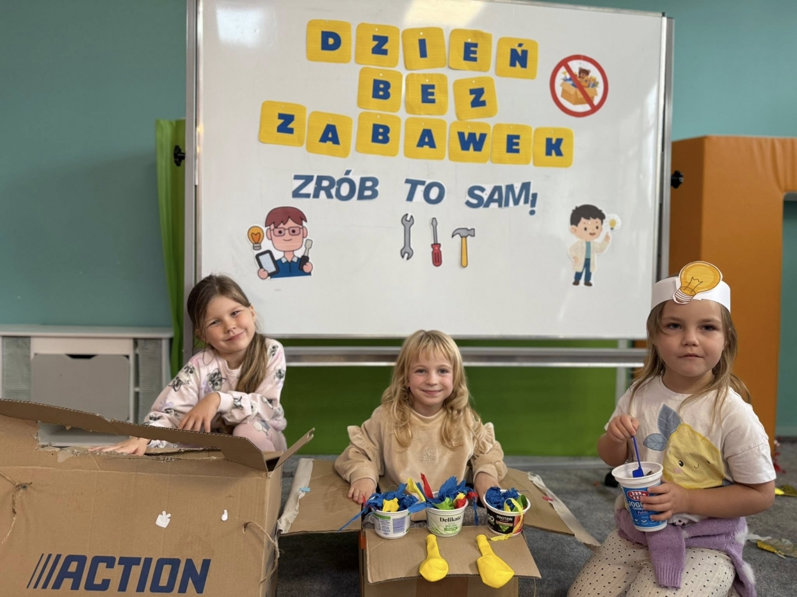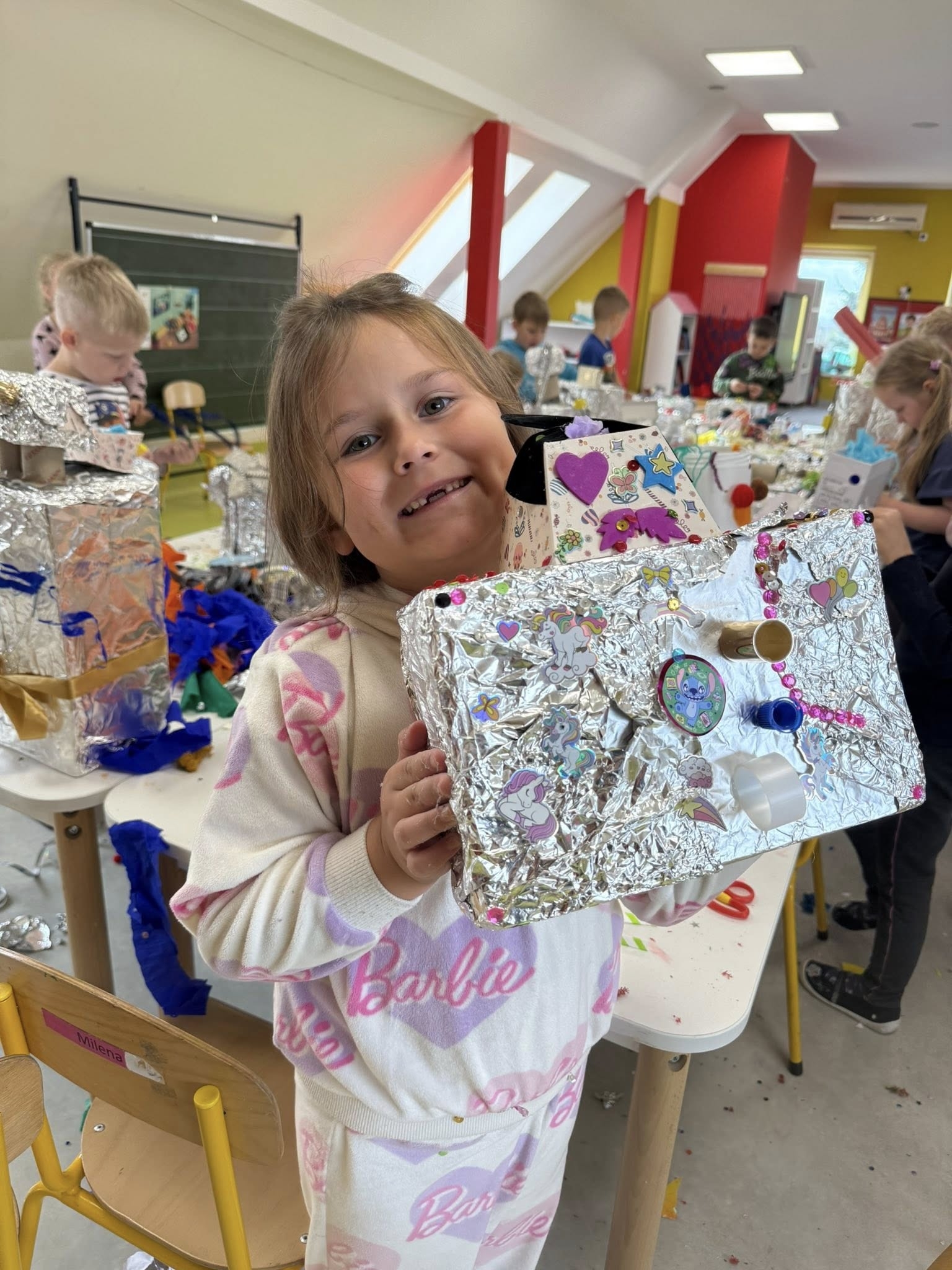 W salach Żłobka, Przedszkola i Zerówki Mały Europejczyk w Elblągu zapanowała twórcza atmosfera. Kartony, taśmy, rolki, sznurki, guziki, korki, nakrętki i pudełka – wszystko, co tylko można było przekształcić w coś nowego – stało się materiałem do budowy własnych zabawek. Starszaki rozpoczęły dzień od burzy mózgów, bo każdy wynalazek zaczyna się od dobrego pomysłu. Dzieci tworzyły maszyny, pojazdy, roboty i konstrukcje, które zachwycały pomysłowością i zaangażowaniem.