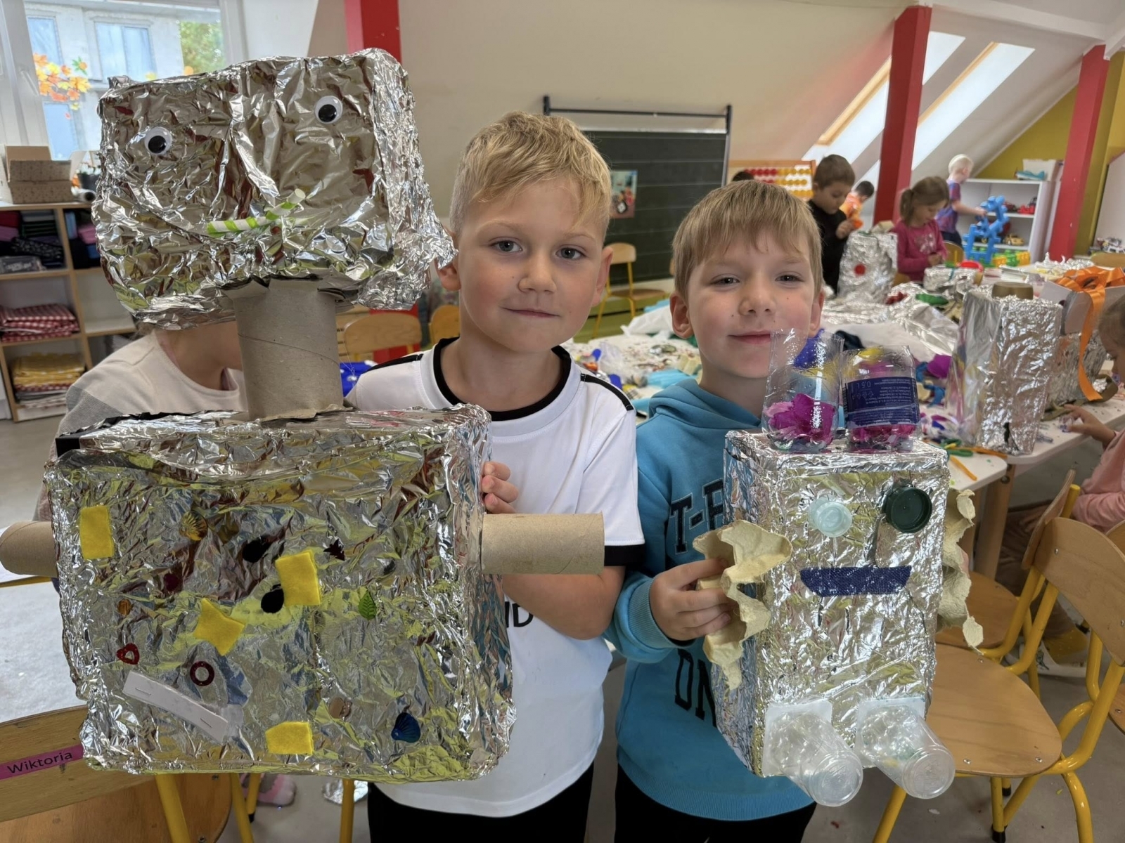 W zerówce mali konstruktorzy budowali roboty z dostępnych materiałów, nadając im imiona, funkcje i osobowości. Każdy projekt był inny – tak jak jego twórca. Dzieci nie tylko rozwijały zdolności manualne, ale także uczyły się planowania, eksperymentowania i rozwiązywania problemów.