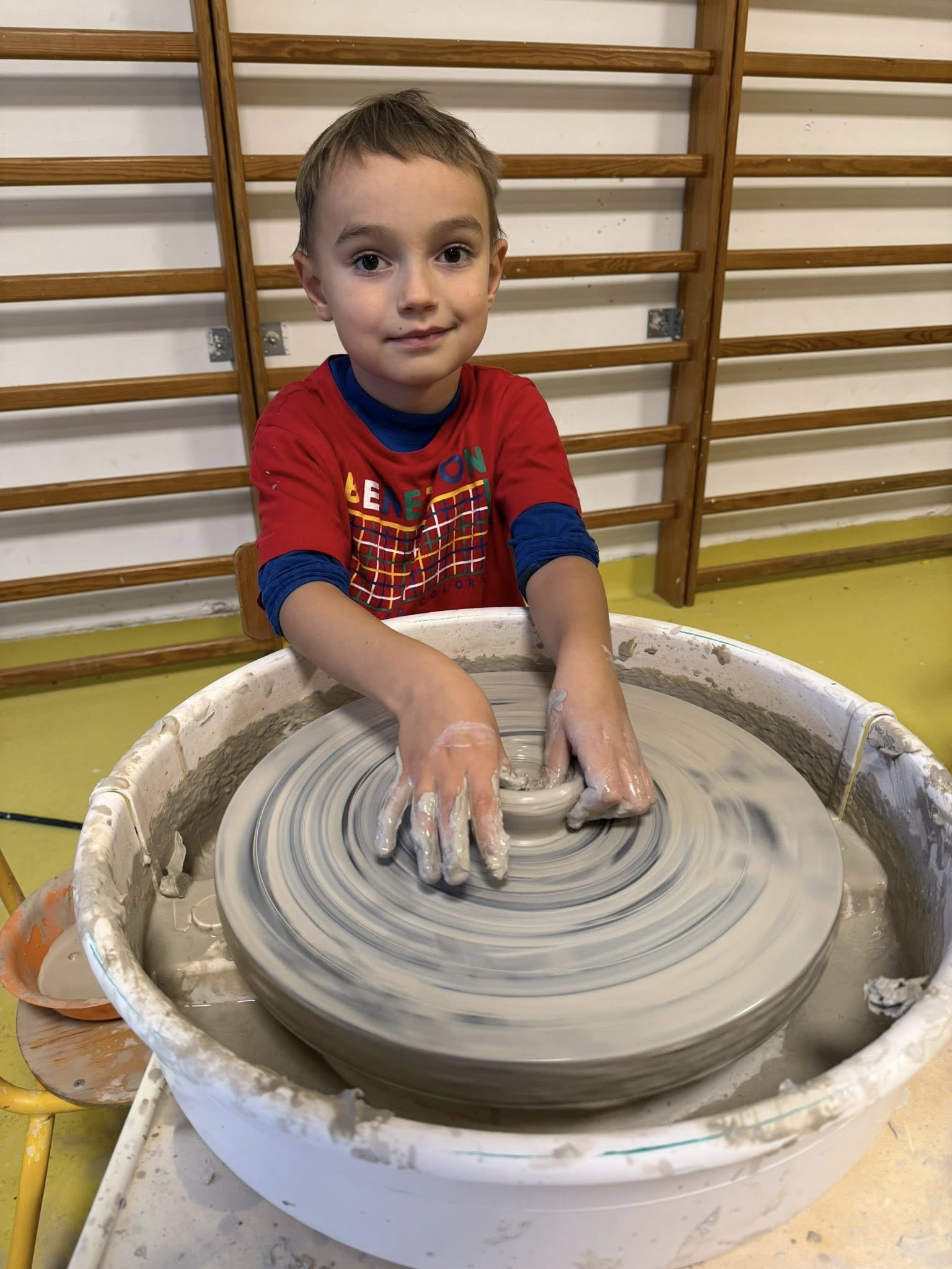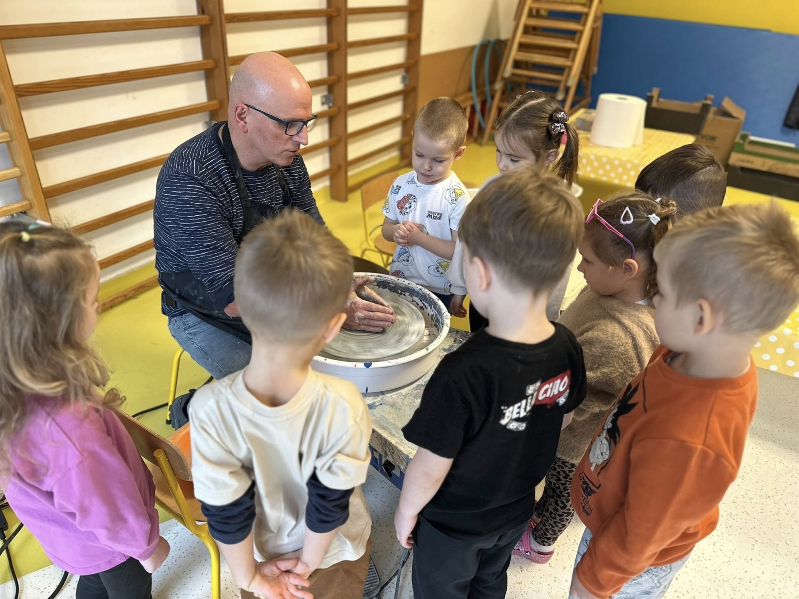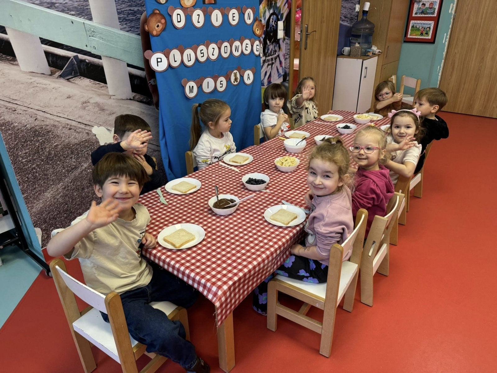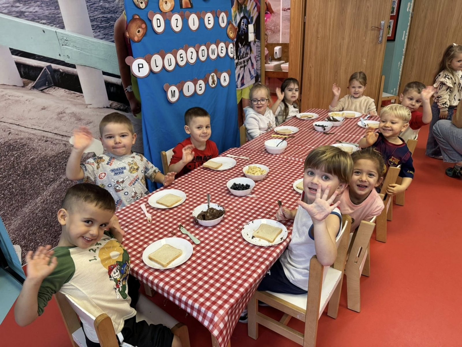 Grupa Średniaków świętowała Dzień Pluszowego Misia w wyjątkowy sposób. Po zabawach z kolorową chustą animacyjną dzieci przygotowały własne misiowe kanapki – zdrowe, kolorowe i pełne fantazji. Zwieńczeniem dnia były warsztaty garncarskie, podczas których najmłodsi mogli spróbować swoich sił w lepieniu z gliny. To doświadczenie rozwijało kreatywność, sprawność manualną i pozwoliło poczuć radość tworzenia czegoś własnymi rękami.