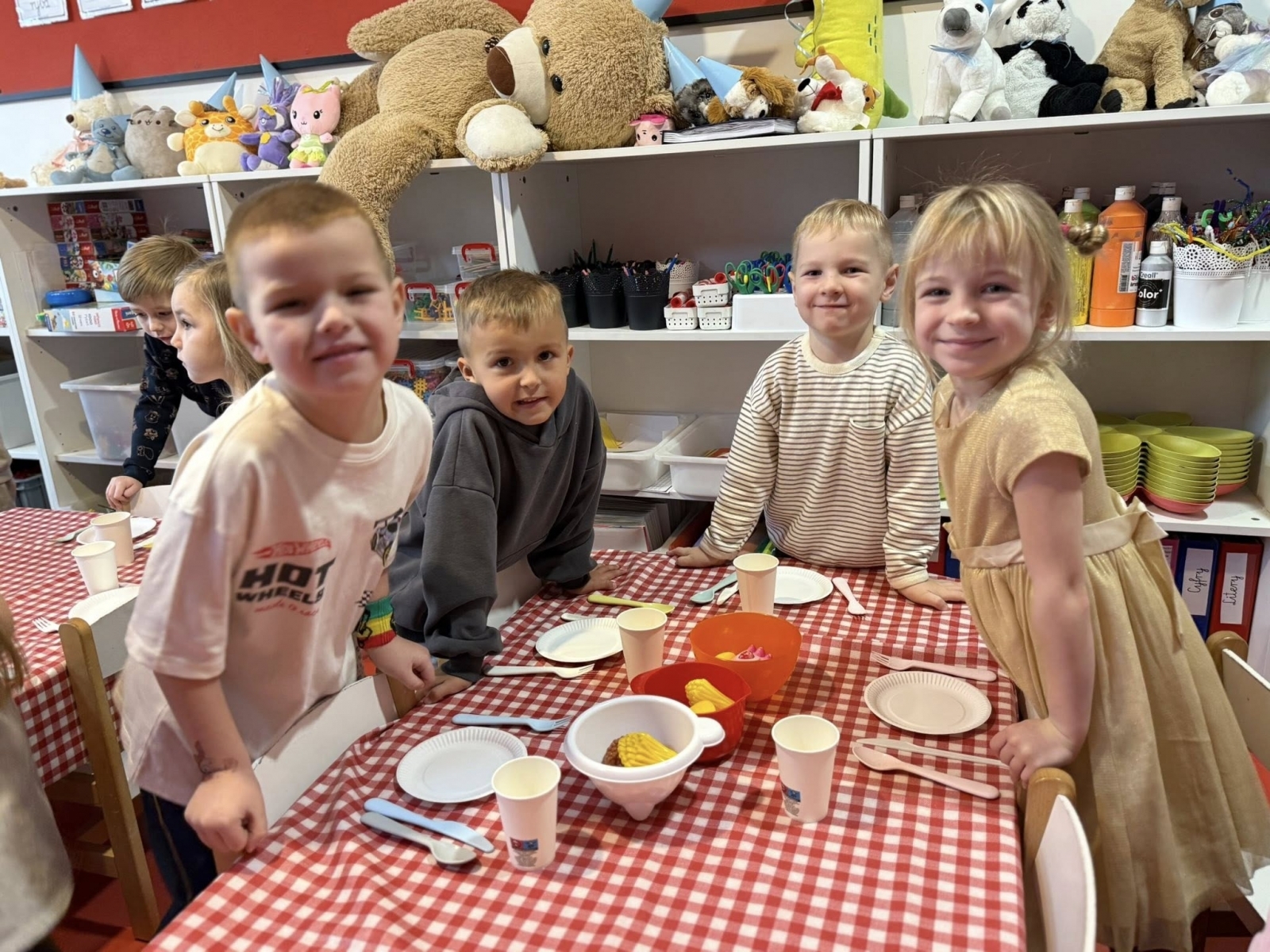 Dzieci uczyły się także podstaw nakrycia stołu, przygotowując eleganckie przyjęcie dla swoich pluszaków. Dzięki temu zabawa stała się praktyczną lekcją savoir-vivre’u, która w przyszłości pomoże im w codziennych sytuacjach.