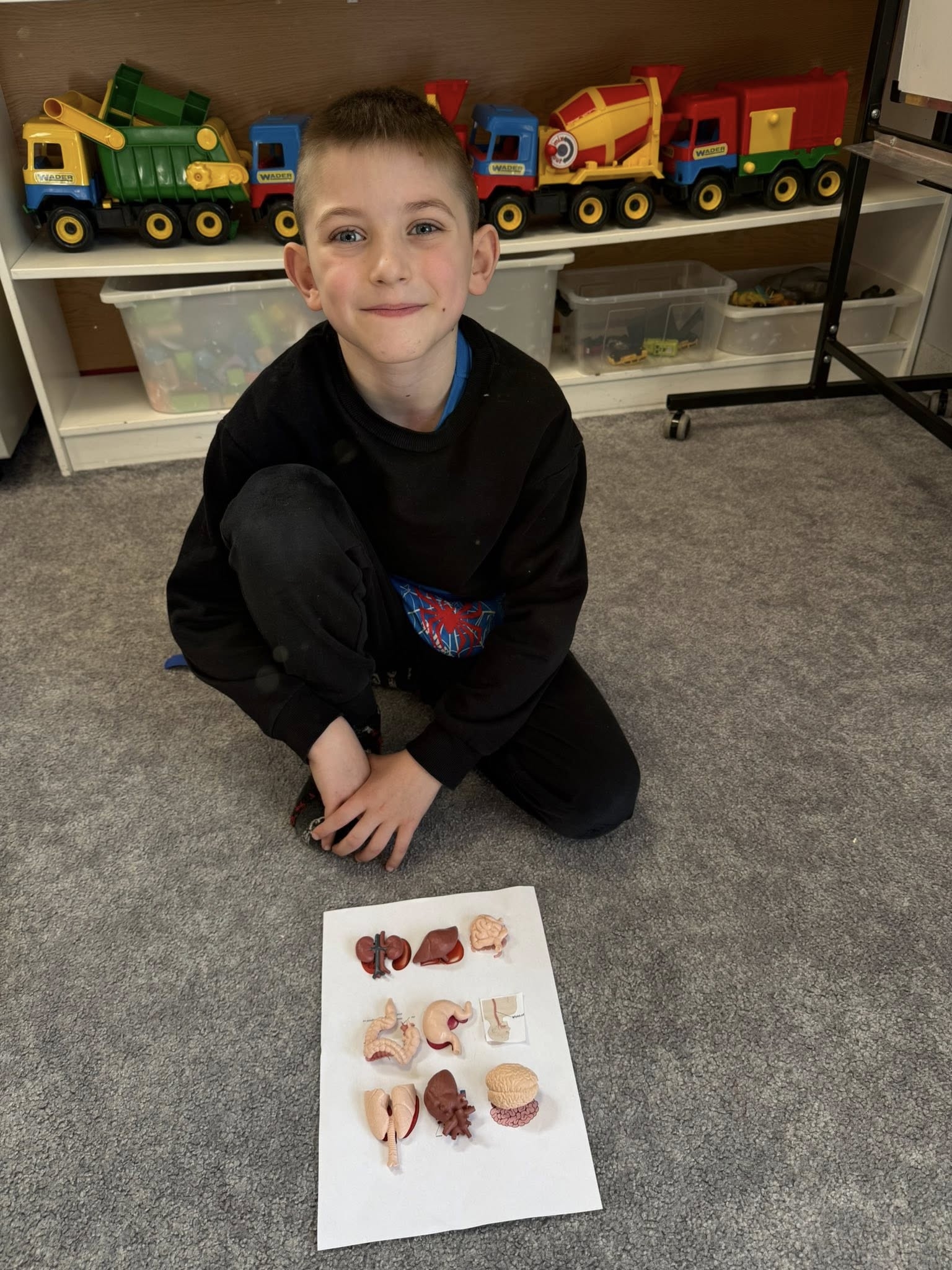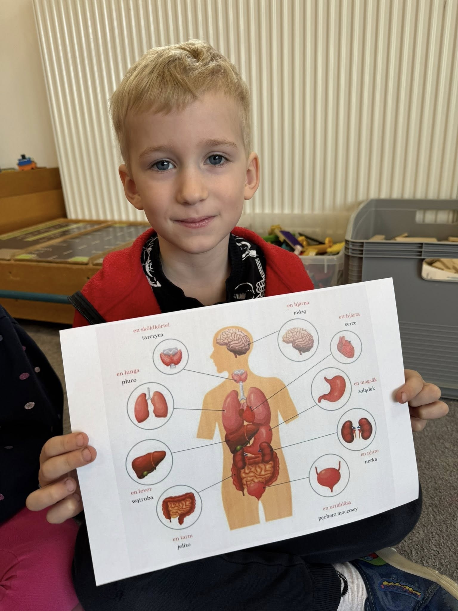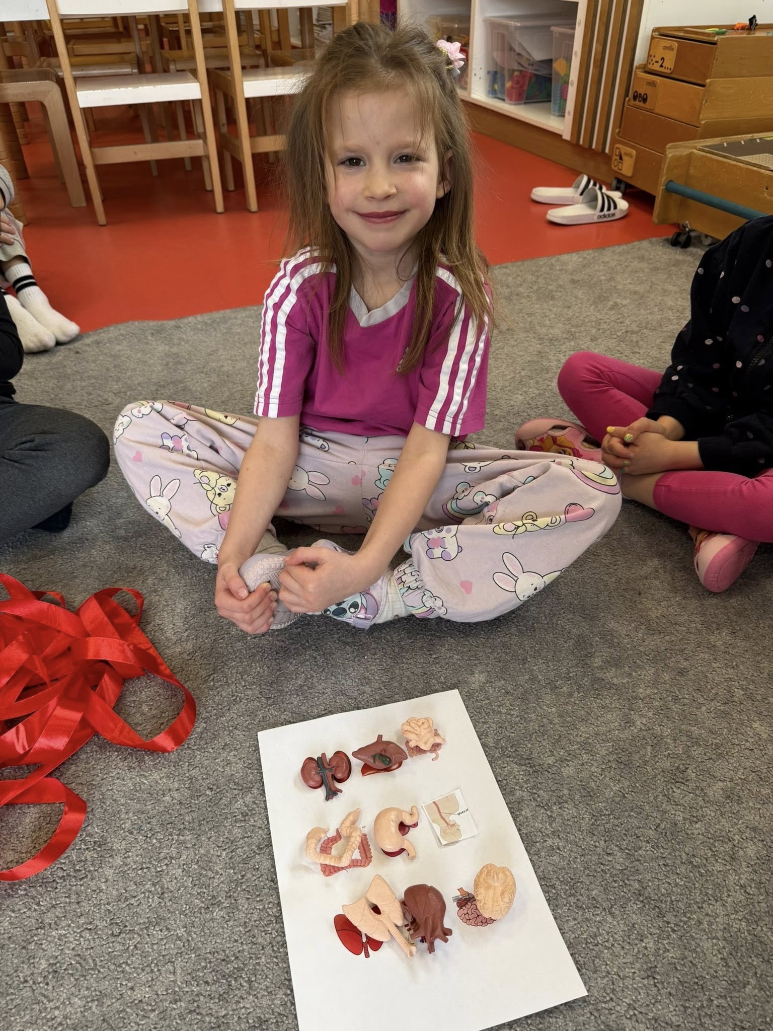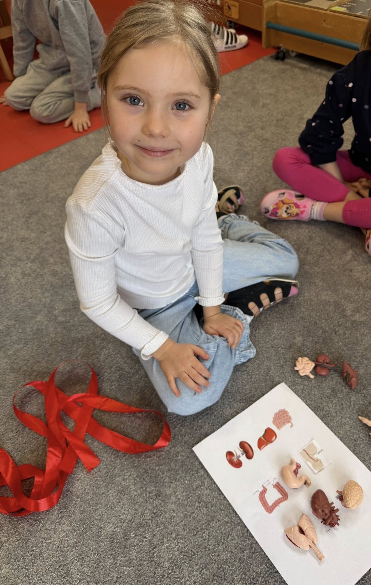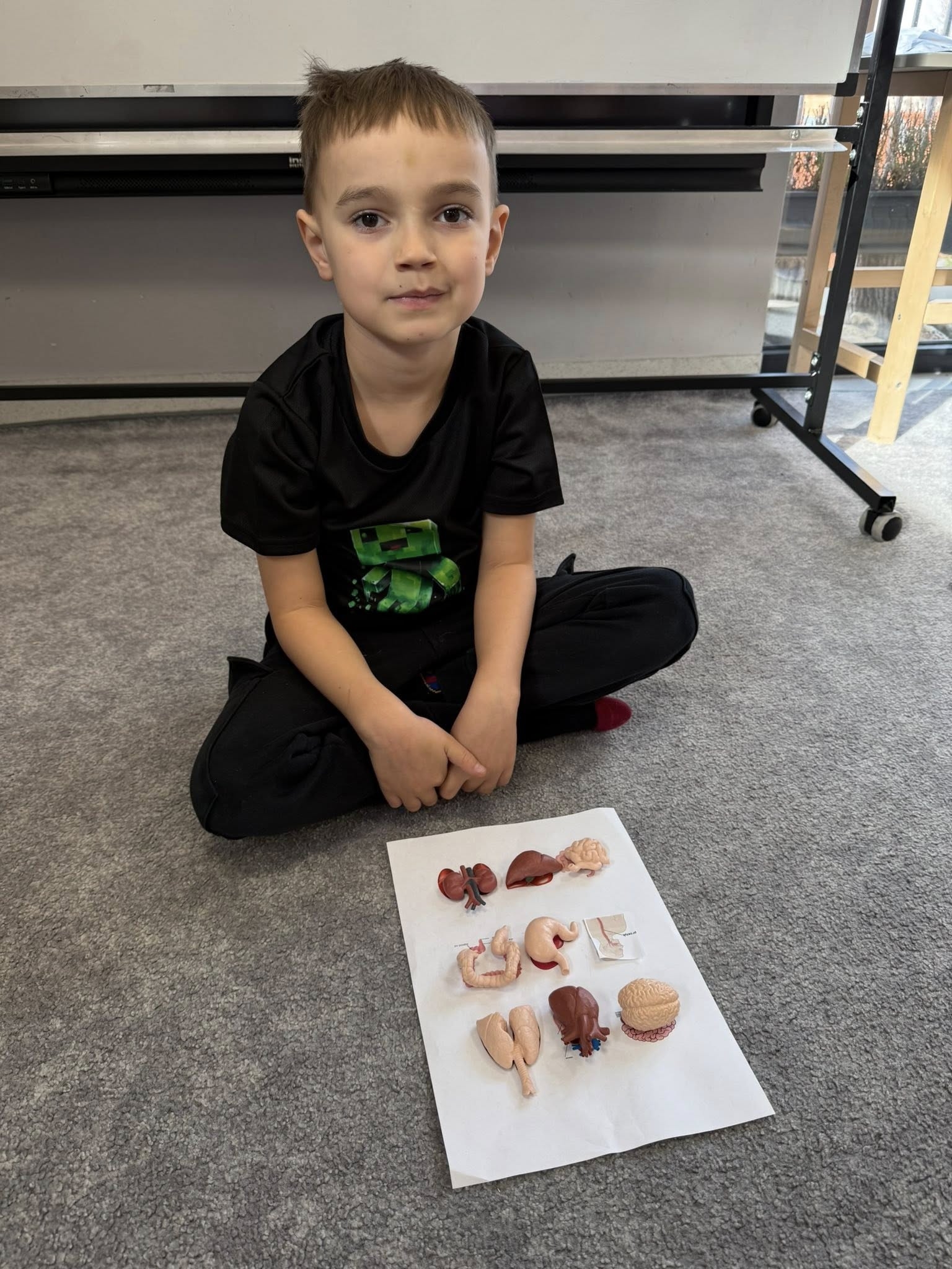 Kiedy już ustaliliśmy, jak dbać o naszą „biologiczną maszynę”, sala zerówki zamieniła się w małe laboratorium medyczne, w którym dzieci mogły obejrzeć realistyczne modele najważniejszych narządów. Wspólnie analizowaliśmy rolę poszczególnych organów, odkrywając, że mózg to nasze centrum dowodzenia pozwalające nam myśleć i zapamiętywać, serce to niestrudzona pompa tłocząca krew, a płuca działają niczym dwa balony dostarczające nam niezbędny tlen.
