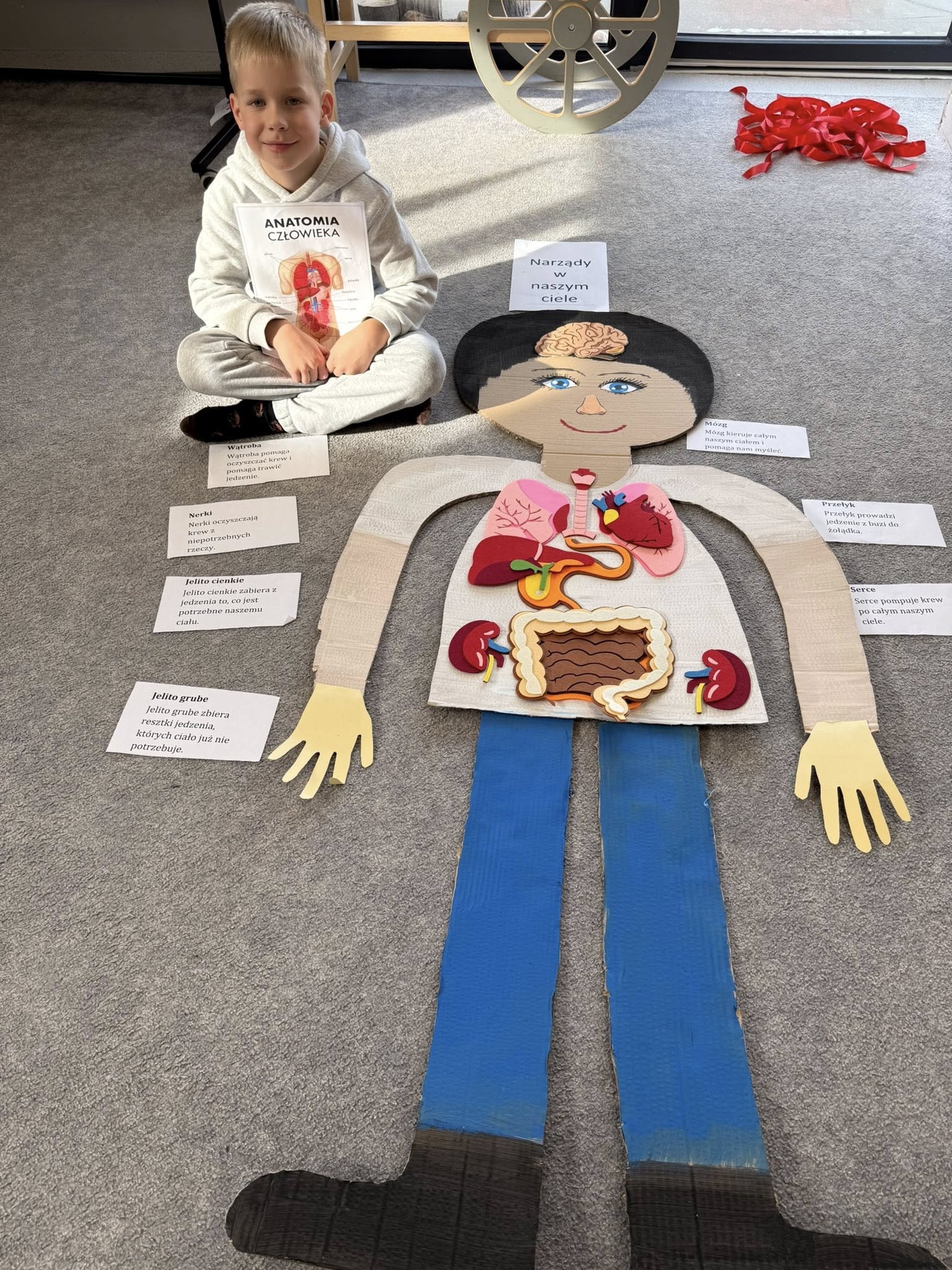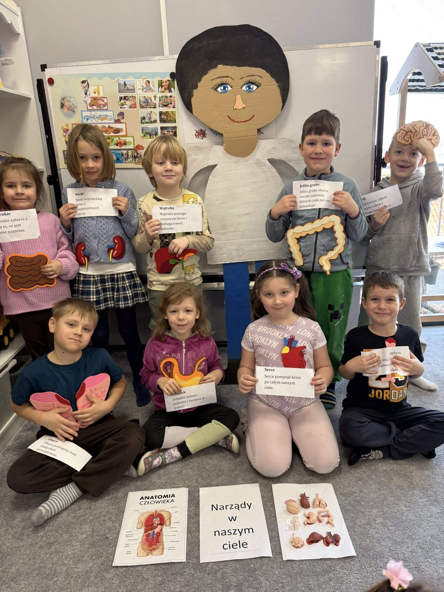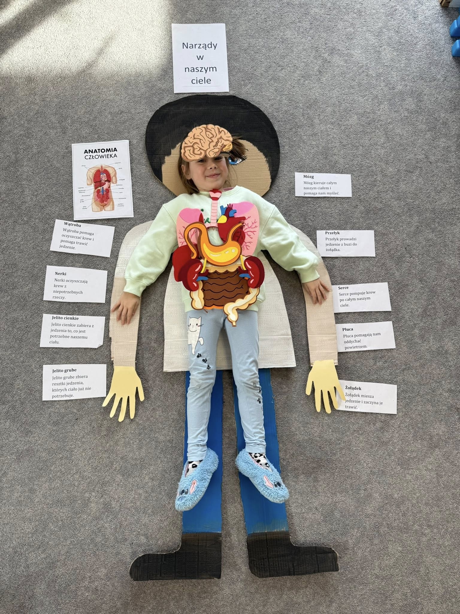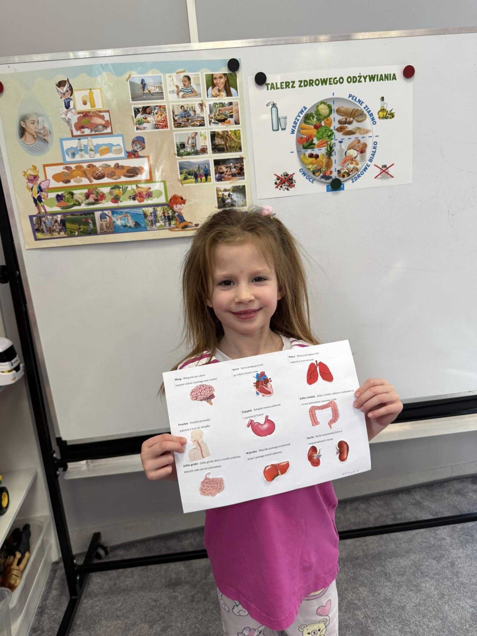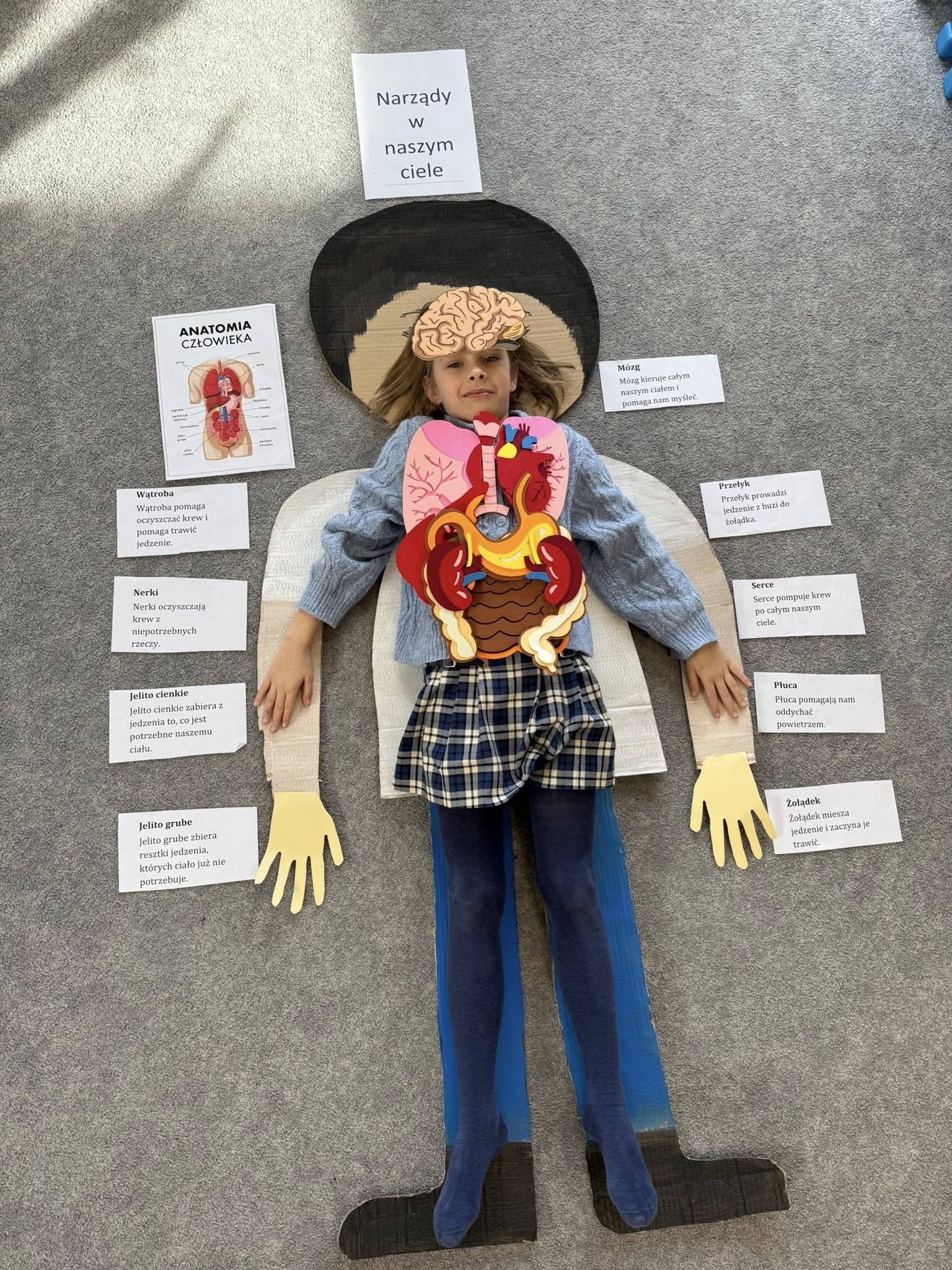 Prawdziwym hitem okazała się jednak zabawa ruchowa, podczas której dzieci mogły przyłożyć modele narządów do własnego ciała i zobaczyć, gdzie dokładnie się one znajdują, co podziałało na wyobraźnię lepiej niż jakikolwiek podręcznik. Dodatkowo dzieci zamieniły się w Detektywów Zdrowia, losując przedmioty z Magicznego Pudełka i dopasowując odnalezione słowa do sylwetki detektywa, a zwieńczeniem tych działań była praca plastyczna „Mój zdrowy talerz”.
