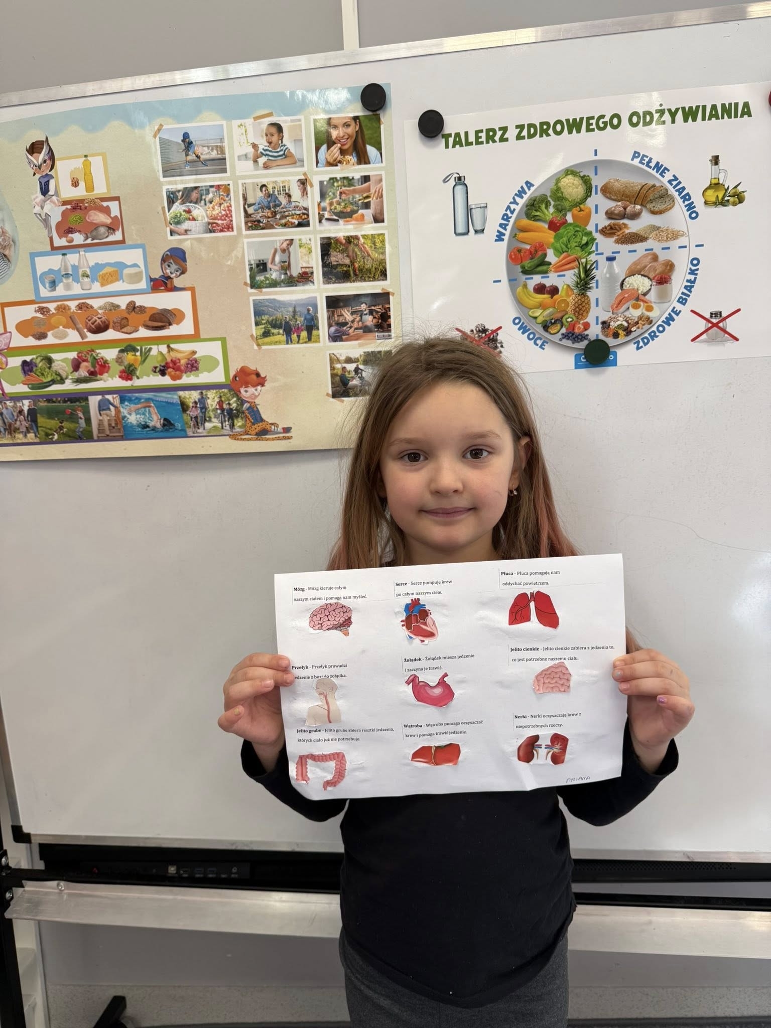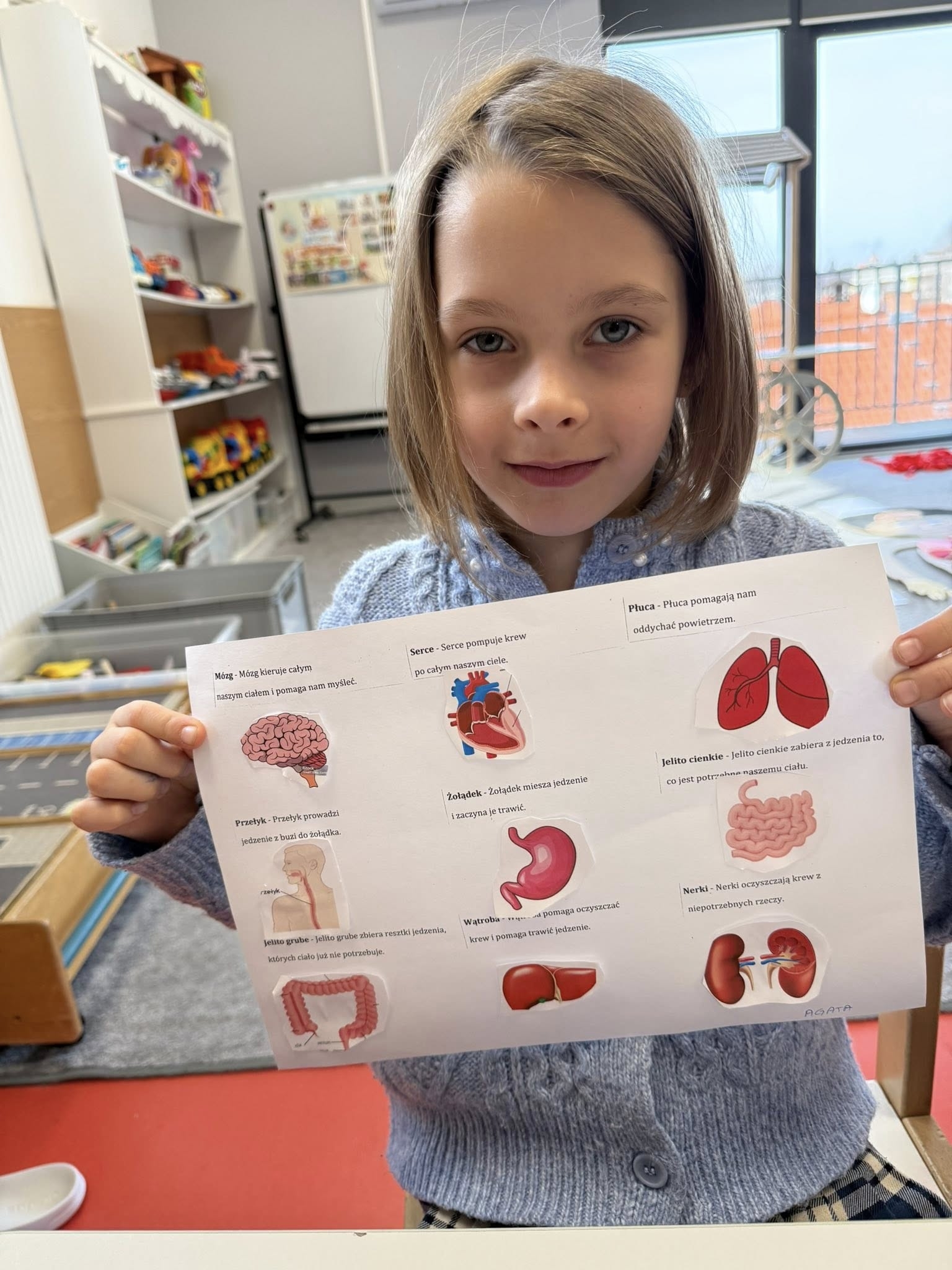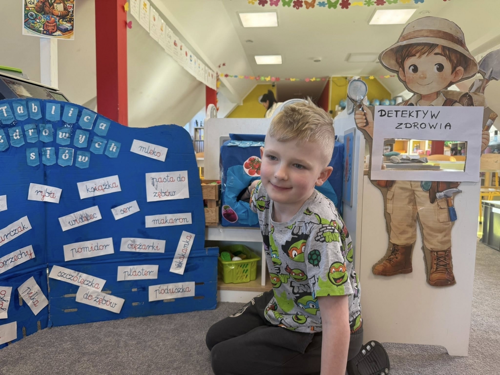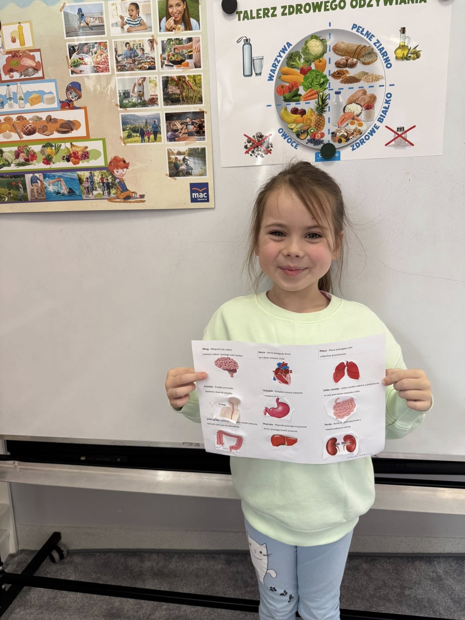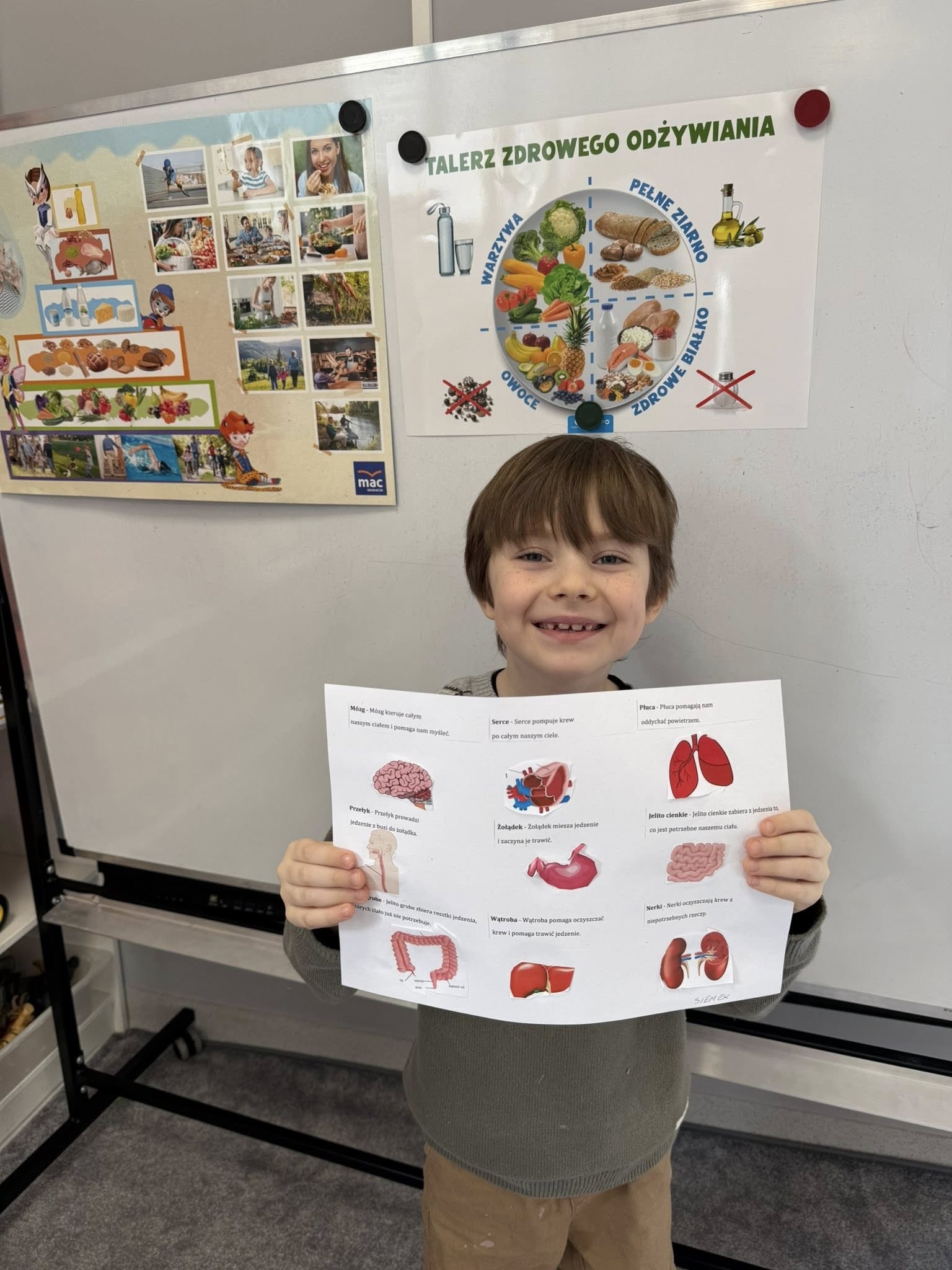 Prawdziwym hitem okazała się jednak zabawa ruchowa, podczas której dzieci mogły przyłożyć modele narządów do własnego ciała i zobaczyć, gdzie dokładnie się one znajdują, co podziałało na wyobraźnię lepiej niż jakikolwiek podręcznik. Dodatkowo dzieci zamieniły się w Detektywów Zdrowia, losując przedmioty z Magicznego Pudełka i dopasowując odnalezione słowa do sylwetki detektywa, a zwieńczeniem tych działań była praca plastyczna „Mój zdrowy talerz”.