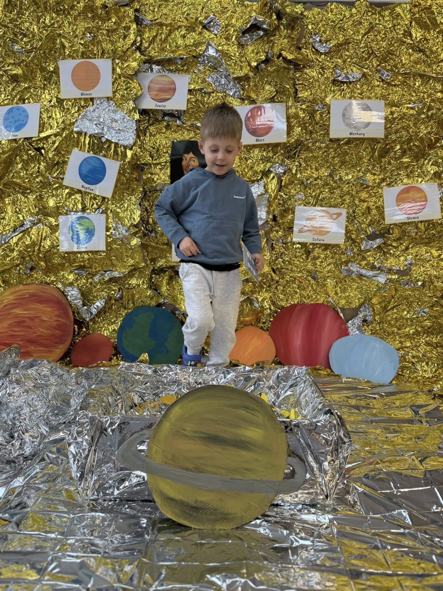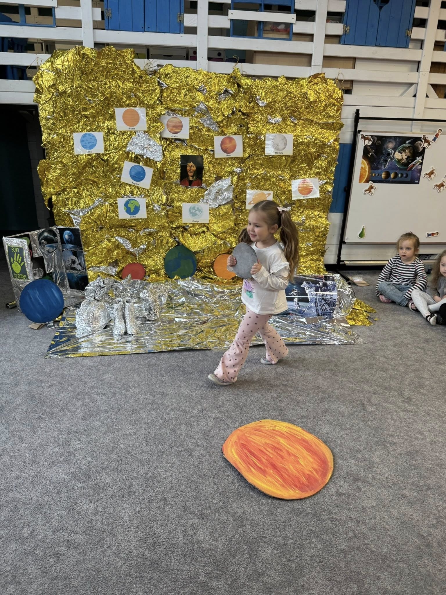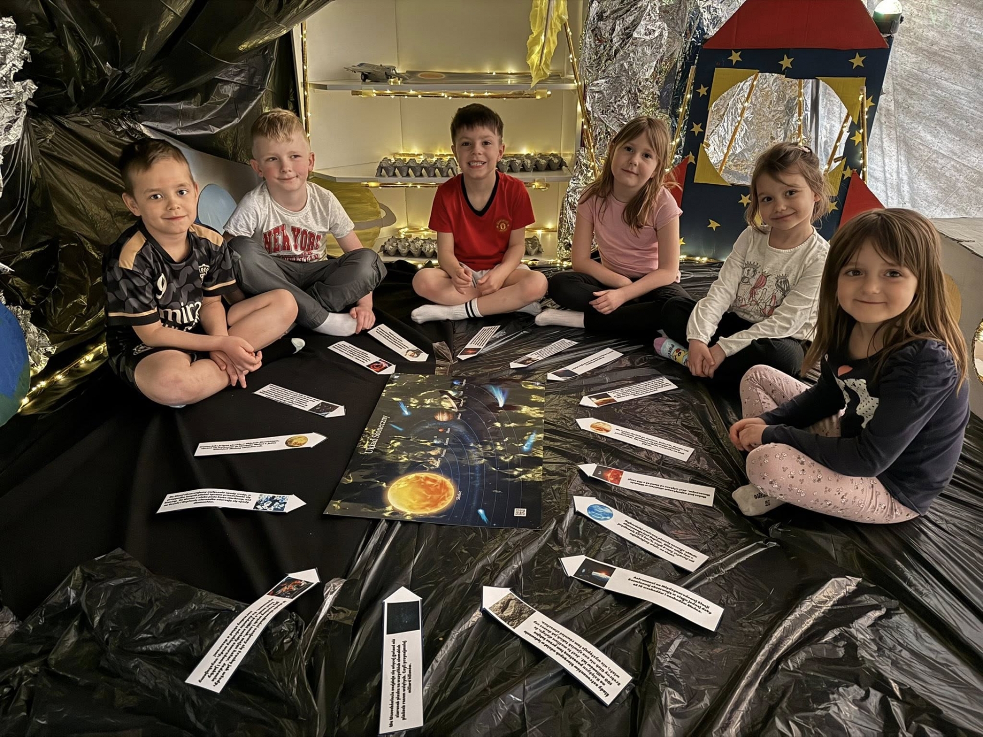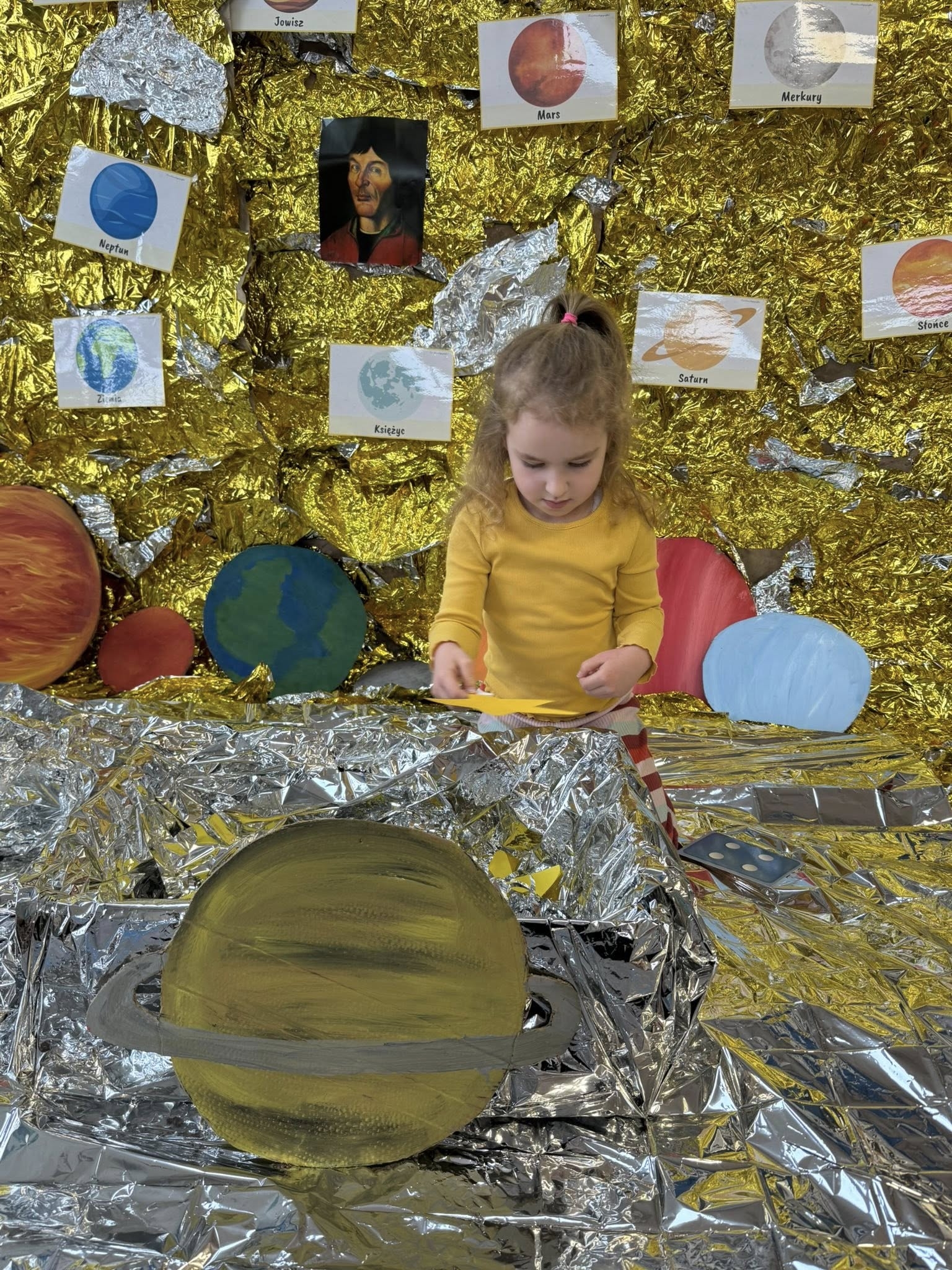 Ważnym punktem naszych zajęć było przybliżenie postaci Mikołaja Kopernika. Jako przedszkole z Elbląga, czujemy szczególną więź z historią regionu i wielkimi ludźmi, którzy tu działali. Dzieci z zapartym tchem słuchały opowieści o tym, kim był ten słynny astronom i jak wyglądało jego życie. Wyjaśniliśmy sobie jego przełomowe odkrycie, które całkowicie zmieniło sposób, w jaki postrzegamy świat. Dzięki temu nasi podopieczni już wiedzą i doskonale pamiętają, że to Słońce znajduje się w centrum naszego układu, a Ziemia i inne planety niestrudzenie krążą wokół niego.