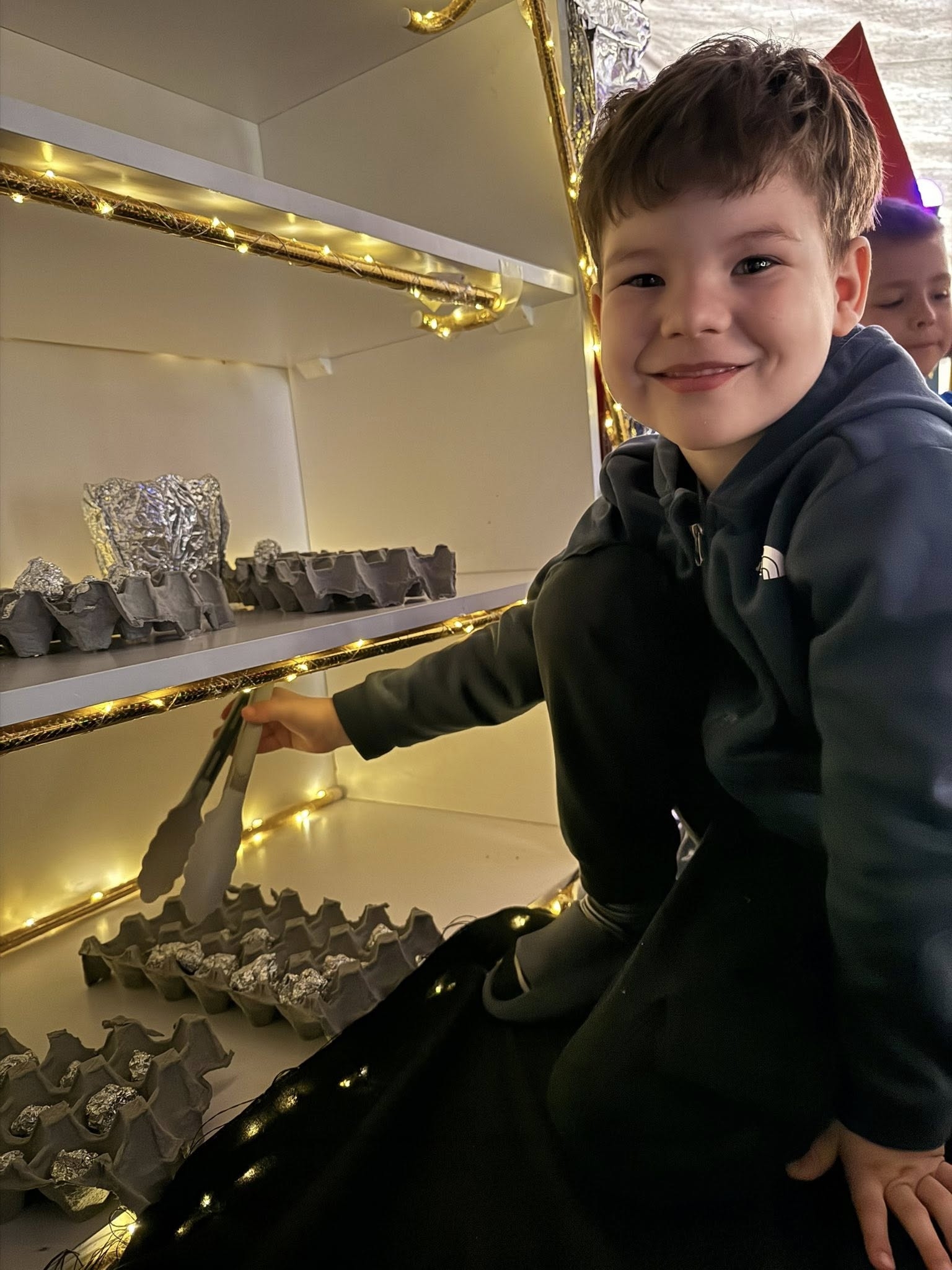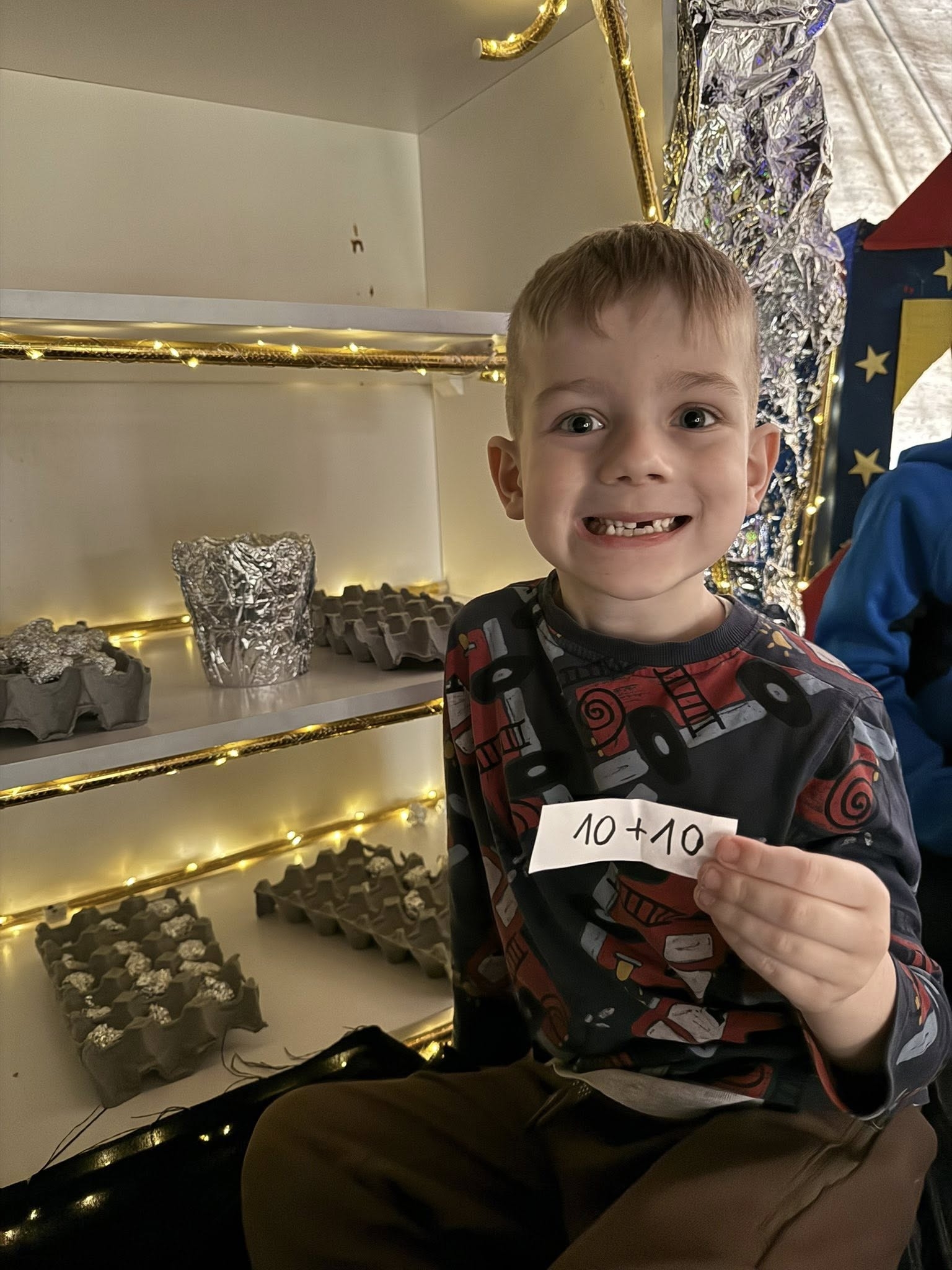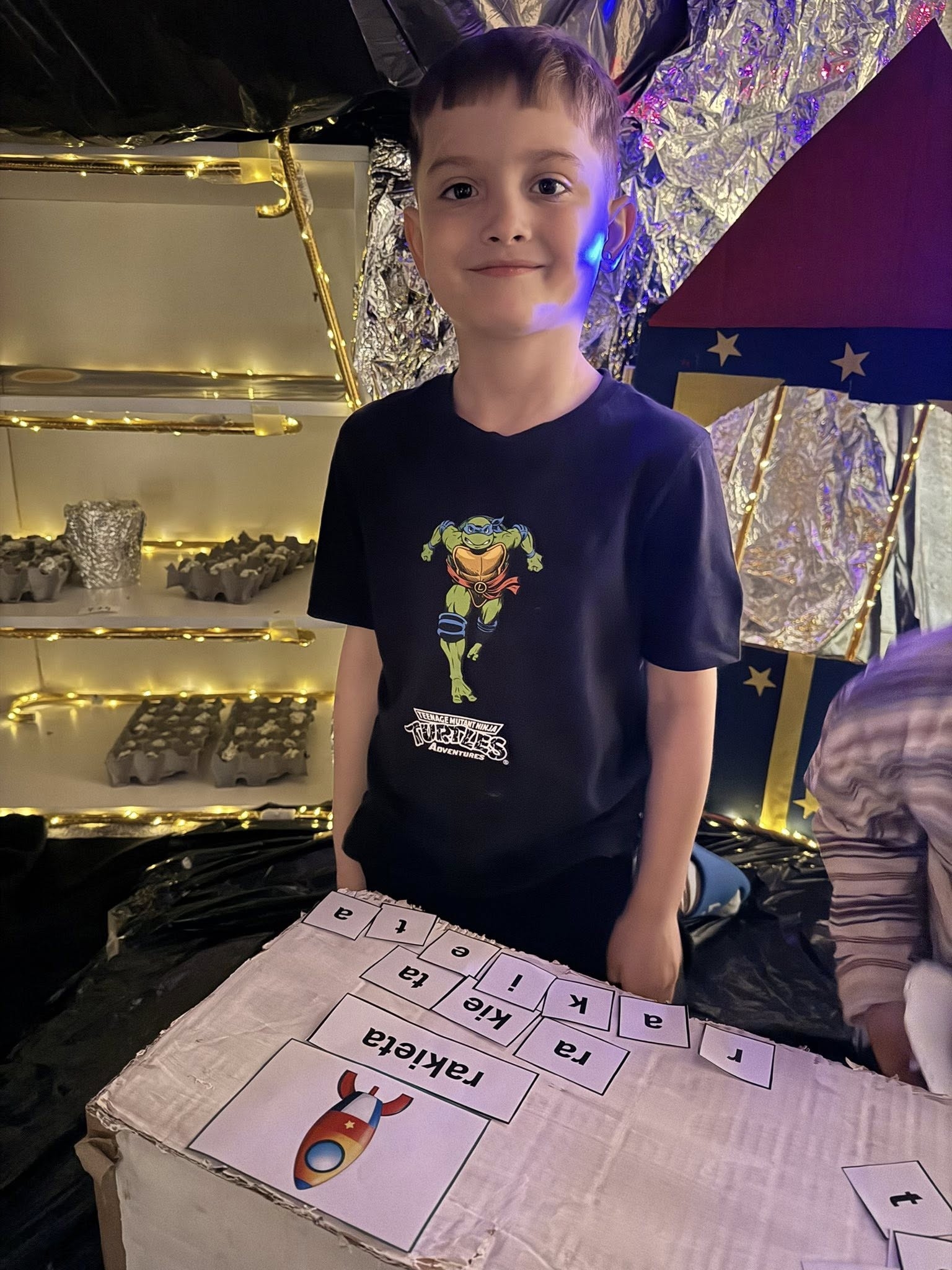 Każdy, kto marzy o locie w kosmos, musi być sprawny i spostrzegawczy. Dlatego w planie dnia znalazło się miejsce na aktywność ruchową – dzieci z entuzjazmem „łapały matematyczne gwiazdy”, co wymagało od nich nie lada refleksu. Rozmawialiśmy również o tym, jak trudna i odpowiedzialna jest praca astronauty oraz jakie wyzwania czekają na śmiałków w stanie nieważkości. Punktem kulminacyjnym dnia było jednak budowanie własnego kosmicznego pojazdu. Wykorzystując wyobraźnię i wspólne siły, stworzyliśmy rakietę, którą – w sferze dziecięcych marzeń – polecieliśmy prosto na Księżyc!