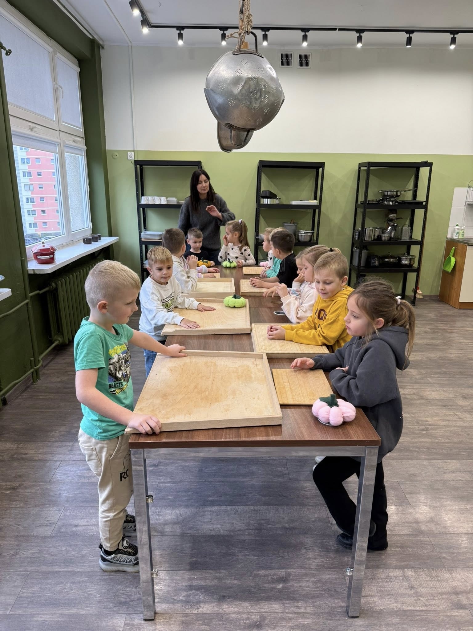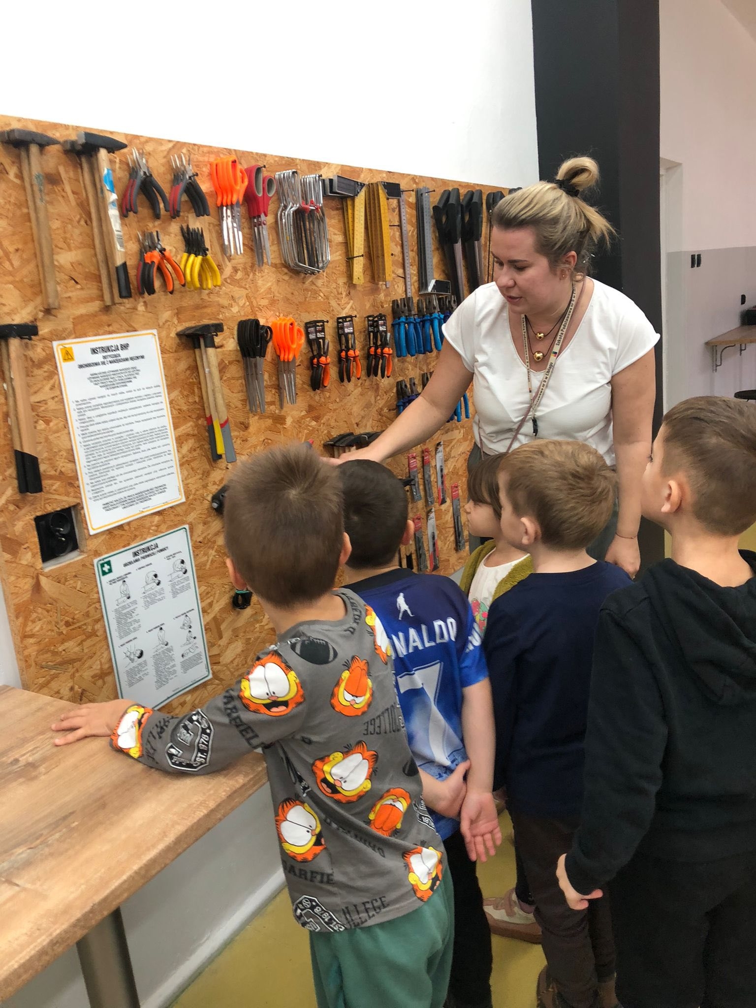Po zakończeniu zajęć artystycznych dzieci zostały oprowadzone po szkole. Wizyta w sali medialnej, pracowni kulinarnej, warsztatowni i innych specjalistycznych pomieszczeniach zrobiła na nich ogromne wrażenie. Każde miejsce kryło w sobie coś ciekawego – nowoczesne sprzęty, kolorowe dekoracje, a przede wszystkim przyjazną atmosferę, która sprawiła, że zerówkowicze czuli się jak u siebie.