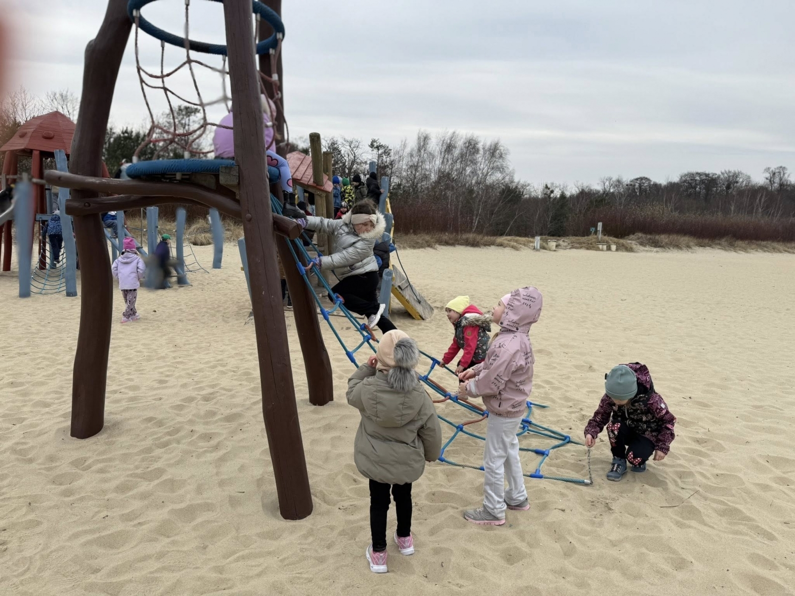 Integracja dzieci w różnym wieku, pod opieką nauczycieli i opiekunów, następuje tylko na terenie parku zabaw, na świeżym powietrzu.