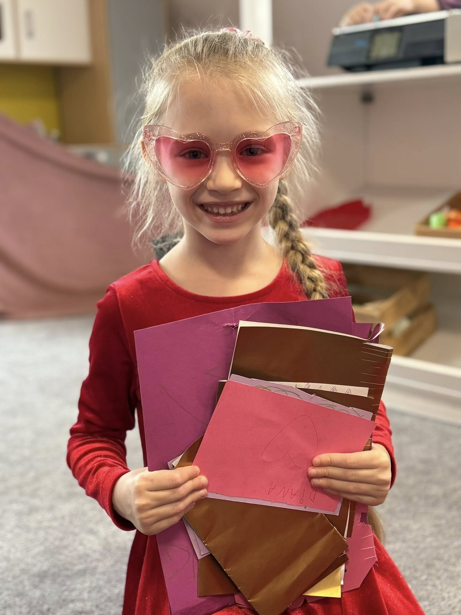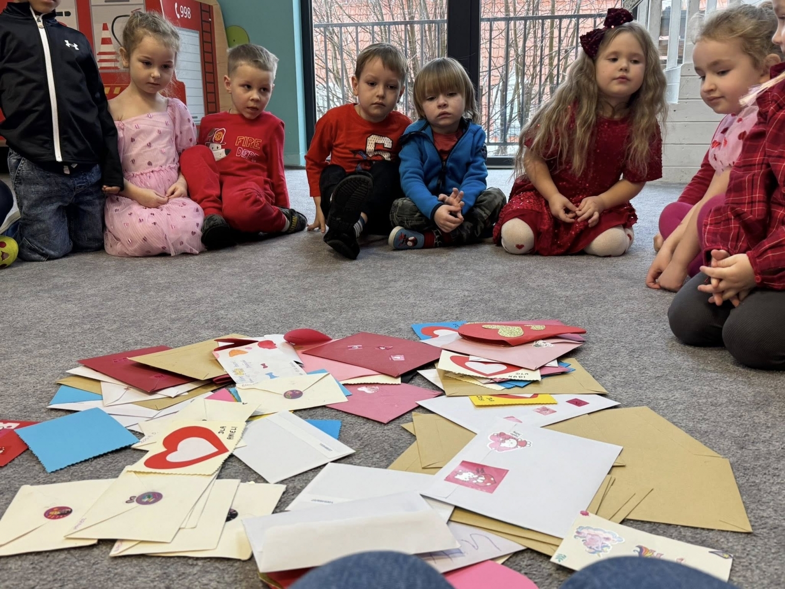 Walentynkowy dzień rozpoczęliśmy od otwarcia długo wyczekiwanej walentynkowej poczty. Już od rana widać było podekscytowanie na twarzach dzieci – każdy z niecierpliwością zastanawiał się, czy w skrzynce czeka na niego miła niespodzianka. Kiedy przyszedł moment rozdawania walentynek, w sali zrobiło się naprawdę magicznie. Pojawiły się uśmiechy, rumieńce, iskierki w oczach i ciche, pełne niedowierzania pytania: „To dla mnie?”.