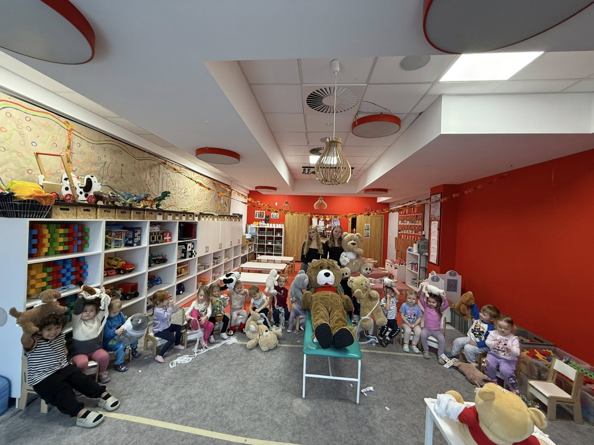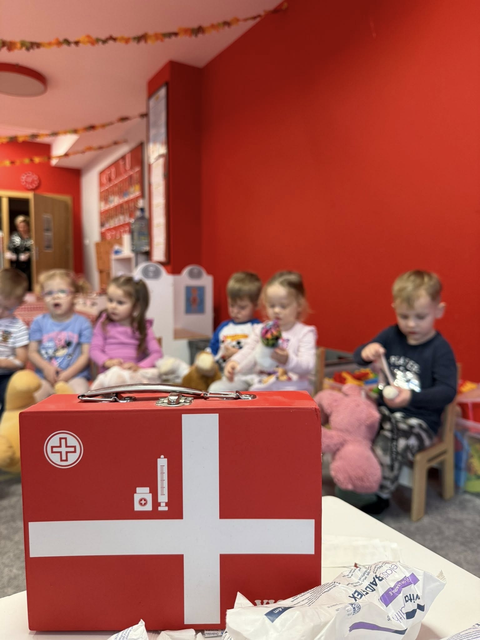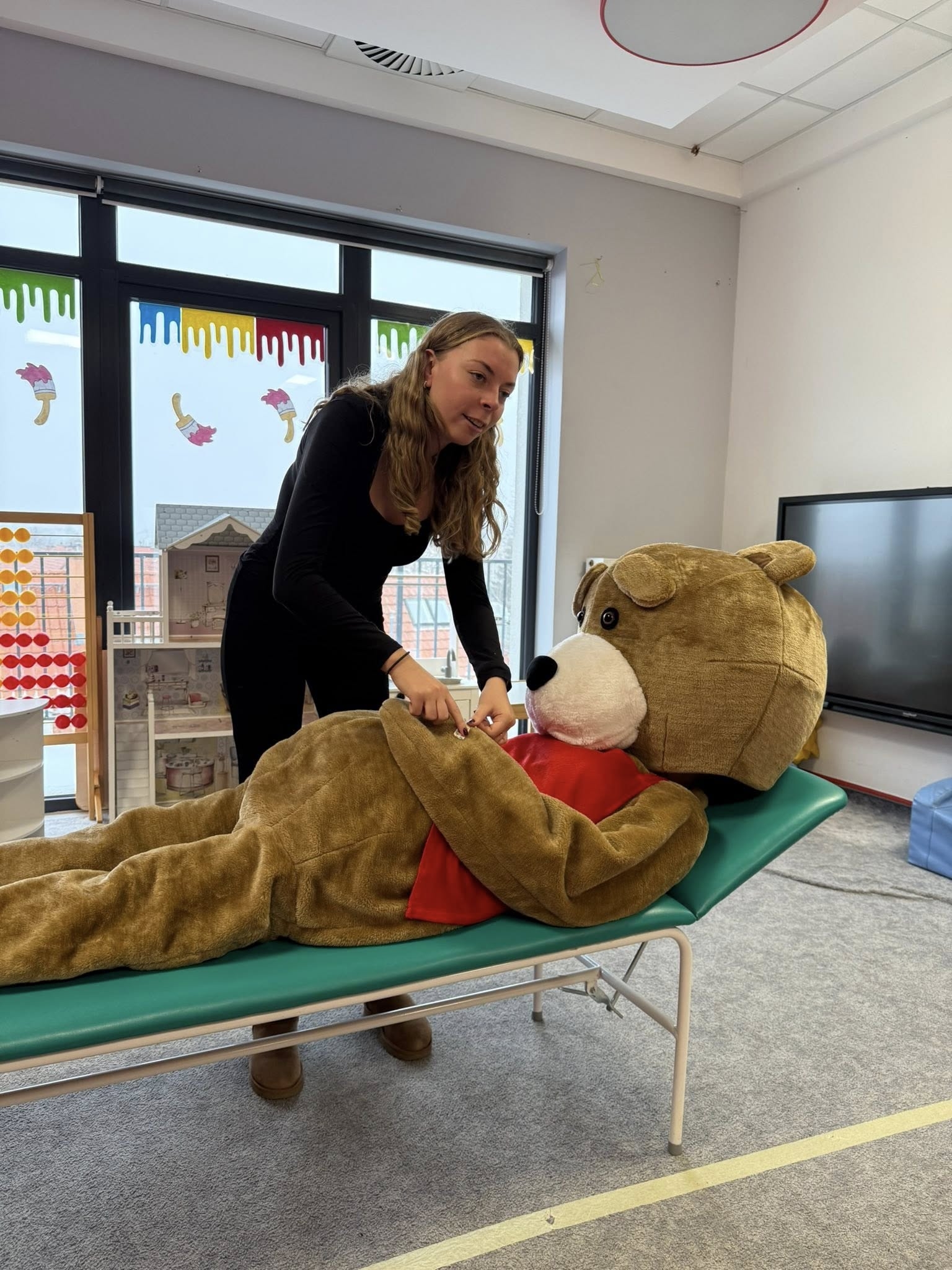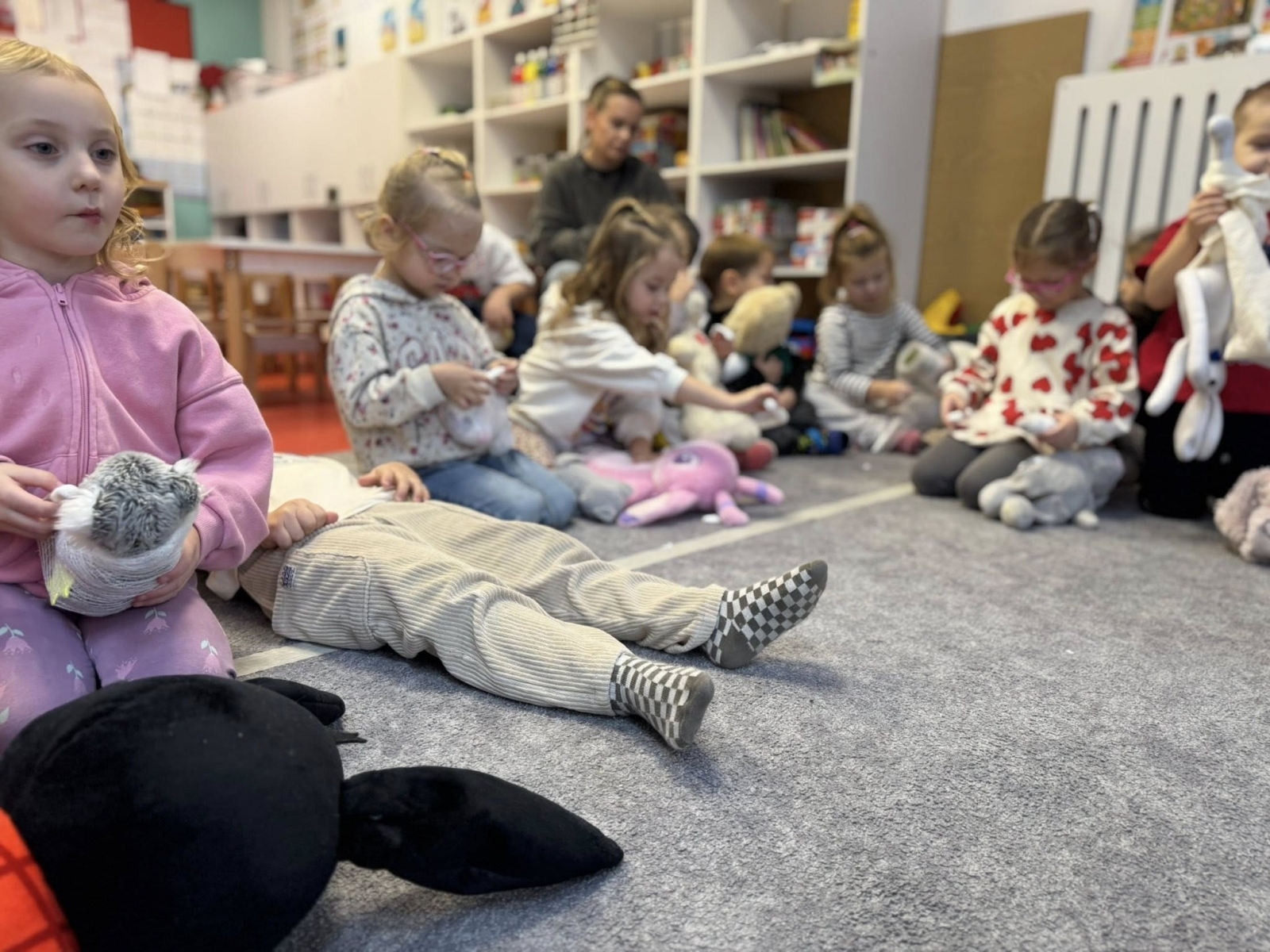 Największą atrakcją zajęć były ćwiczenia praktyczne. Każde dziecko otrzymało możliwość zaopatrzenia swojego „pacjenta” – pluszowego Misia. Maluchy samodzielnie bandażowały łapki, przykleiły plasterki i uczyły się, jak w prosty sposób pomóc w sytuacji drobnego urazu. Dzięki temu nauka stała się zabawą, a zdobyta wiedza została od razu wykorzystana w praktyce.