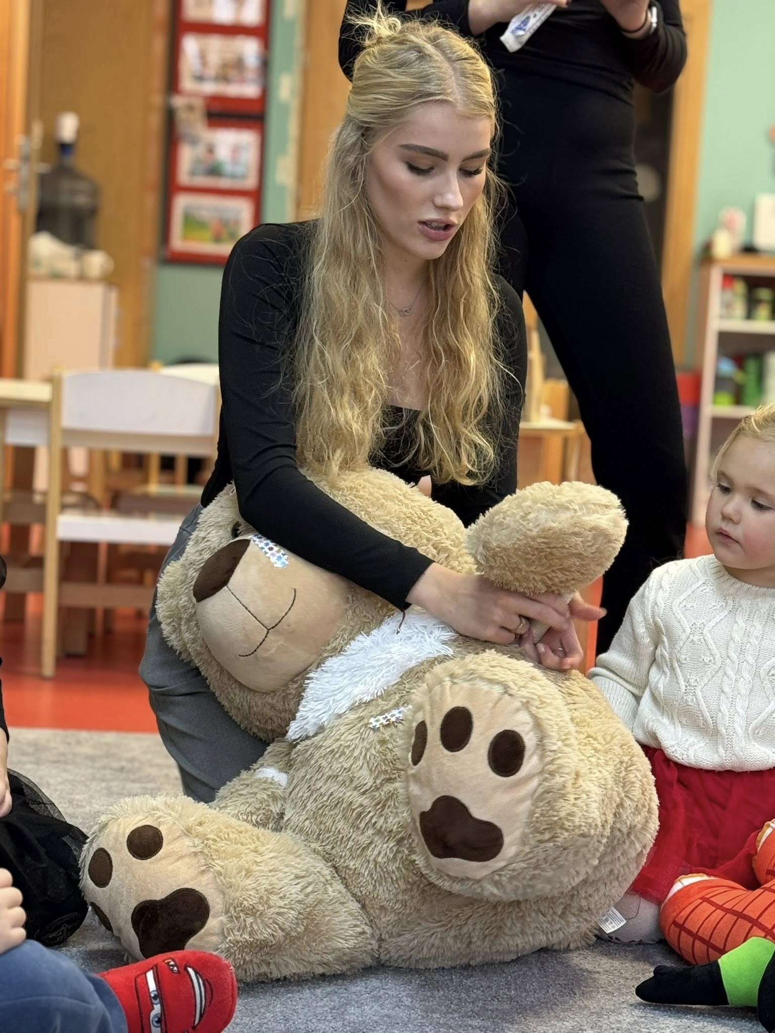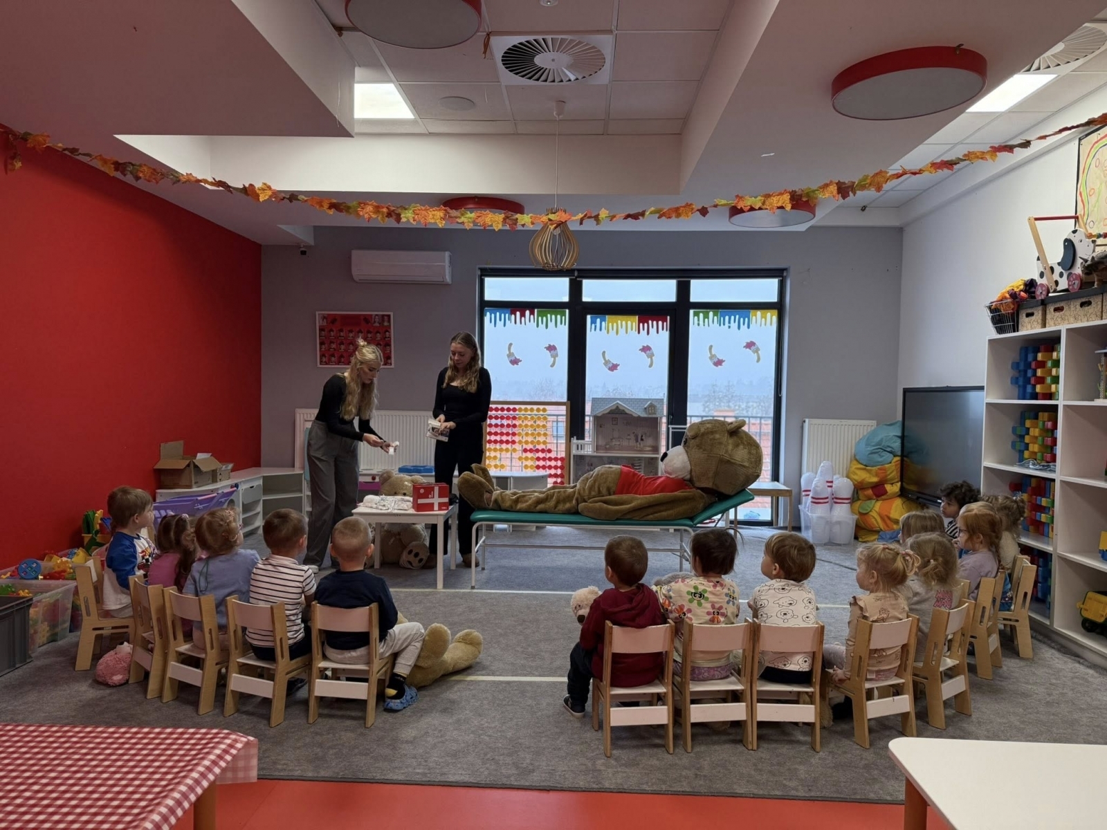 W Żłobku, Przedszkolu i Zerówce Mały Europejczyk w Elblągu odbyły się wyjątkowe zajęcia edukacyjne. Placówkę odwiedziły studentki medycyny, które przygotowały dla najmłodszych praktyczną lekcję o opatrywaniu ran i dbaniu o drobne skaleczenia. Wizyta okazała się nie tylko pouczająca, ale także pełna radości i uśmiechu – dzieci mogły zdobywać wiedzę w atmosferze zabawy i wspólnej aktywności.