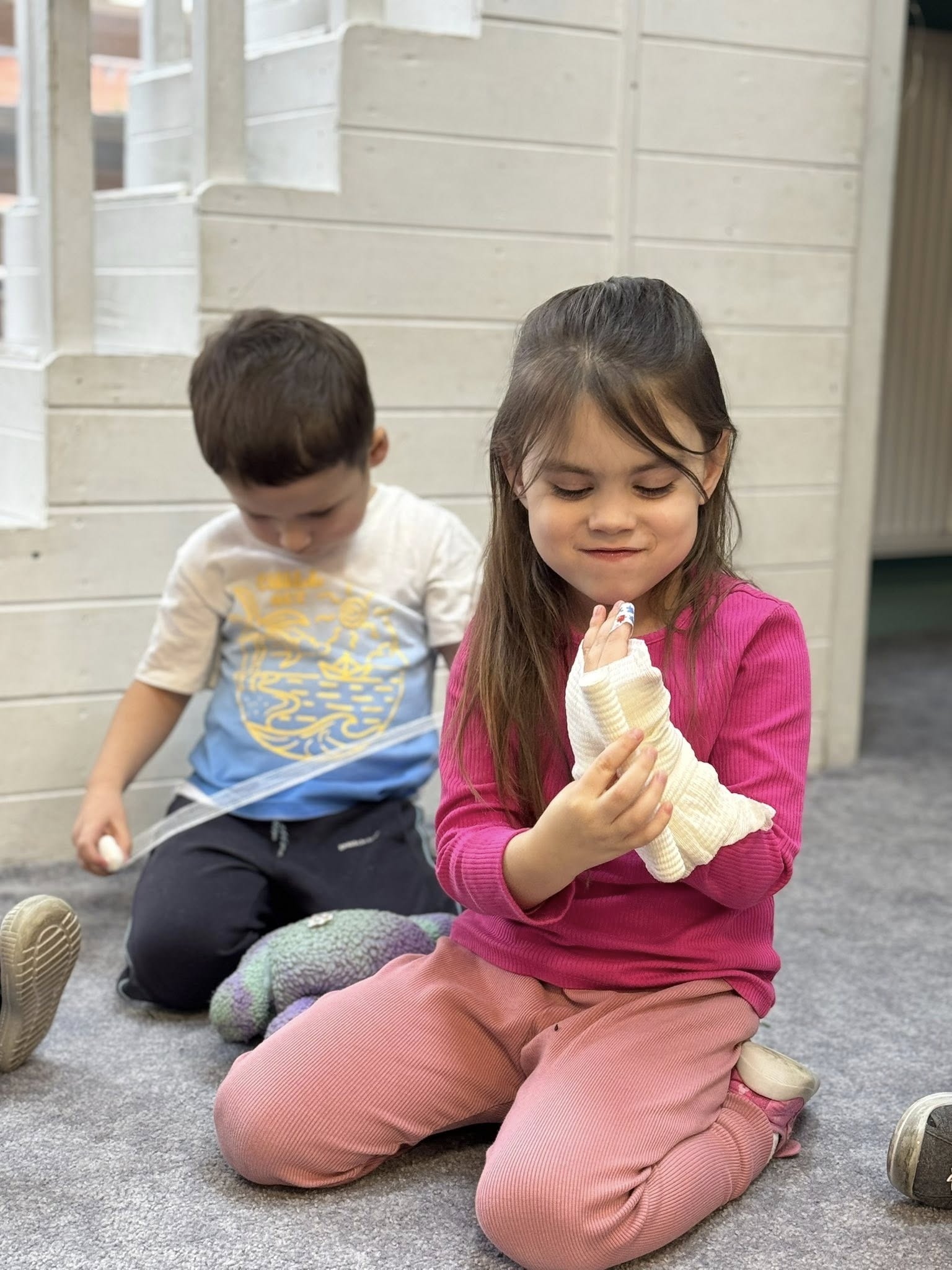 Podczas zajęć studentki medycyny tłumaczyły dzieciom ze Żłobka, Przedszkola i Zerówki Mały Europejczyk w Elblągu, jak należy reagować w przypadku drobnych urazów, takich jak skaleczenia czy otarcia. Maluchy dowiedziały się, że najważniejsze jest odpowiednie oczyszczenie rany, jej dezynfekcja oraz zabezpieczenie plastrem lub bandażem. Dzięki prostym przykładom i pokazom dzieci mogły zrozumieć, że nawet niewielkie skaleczenie wymaga troski i uwagi.