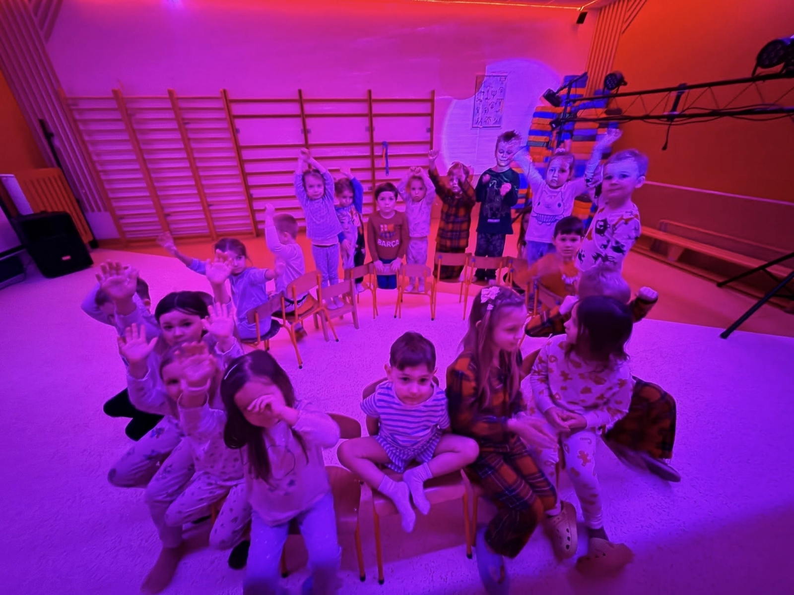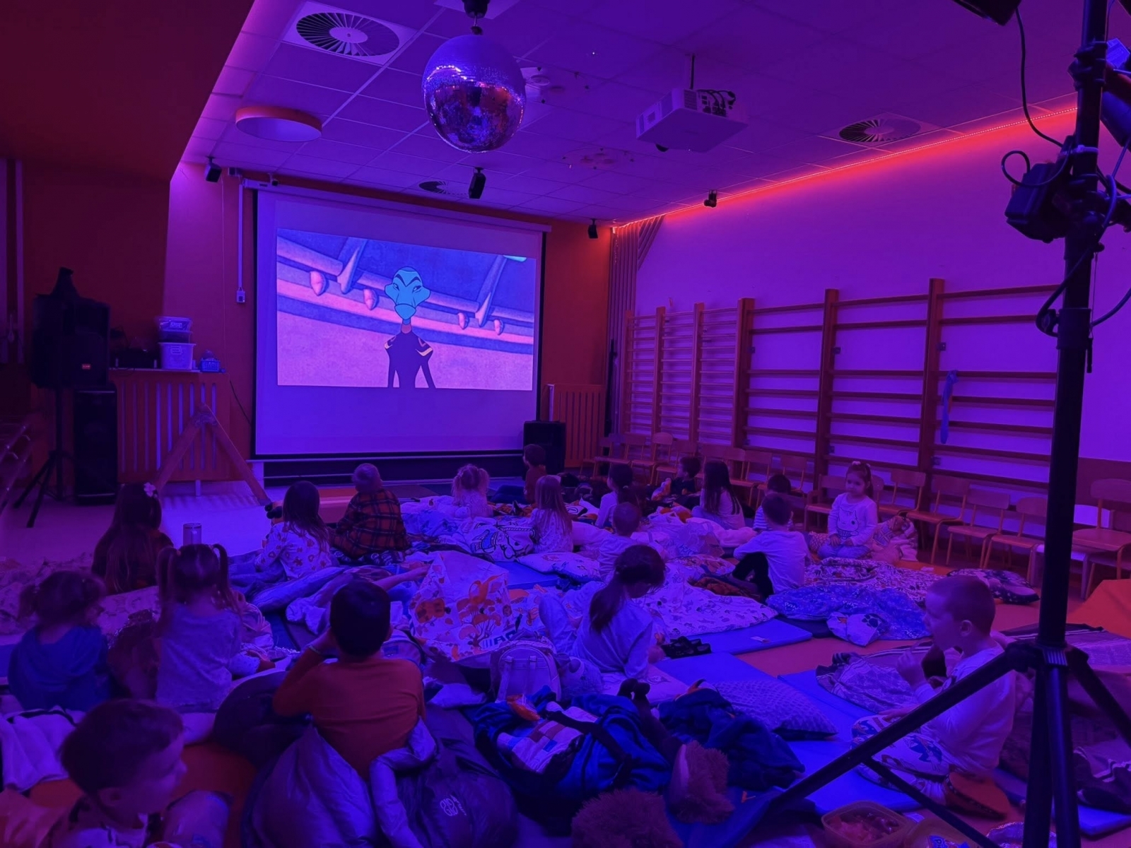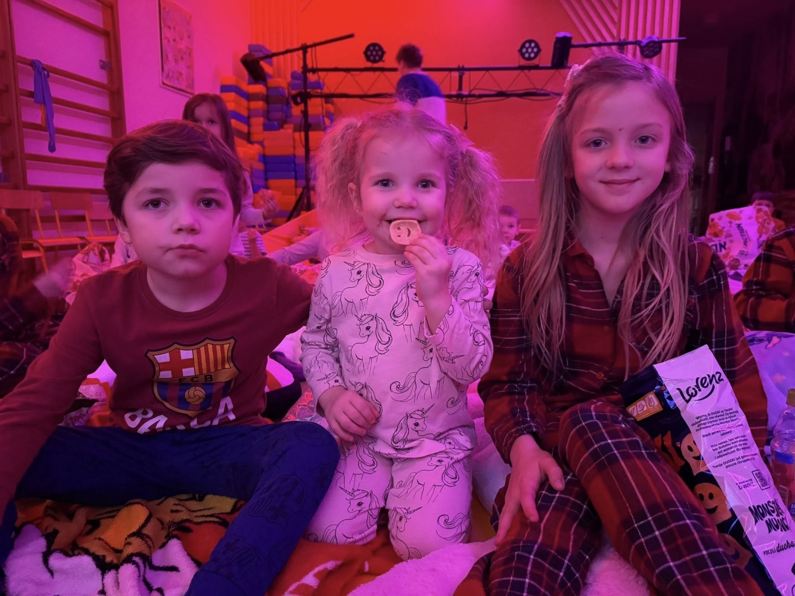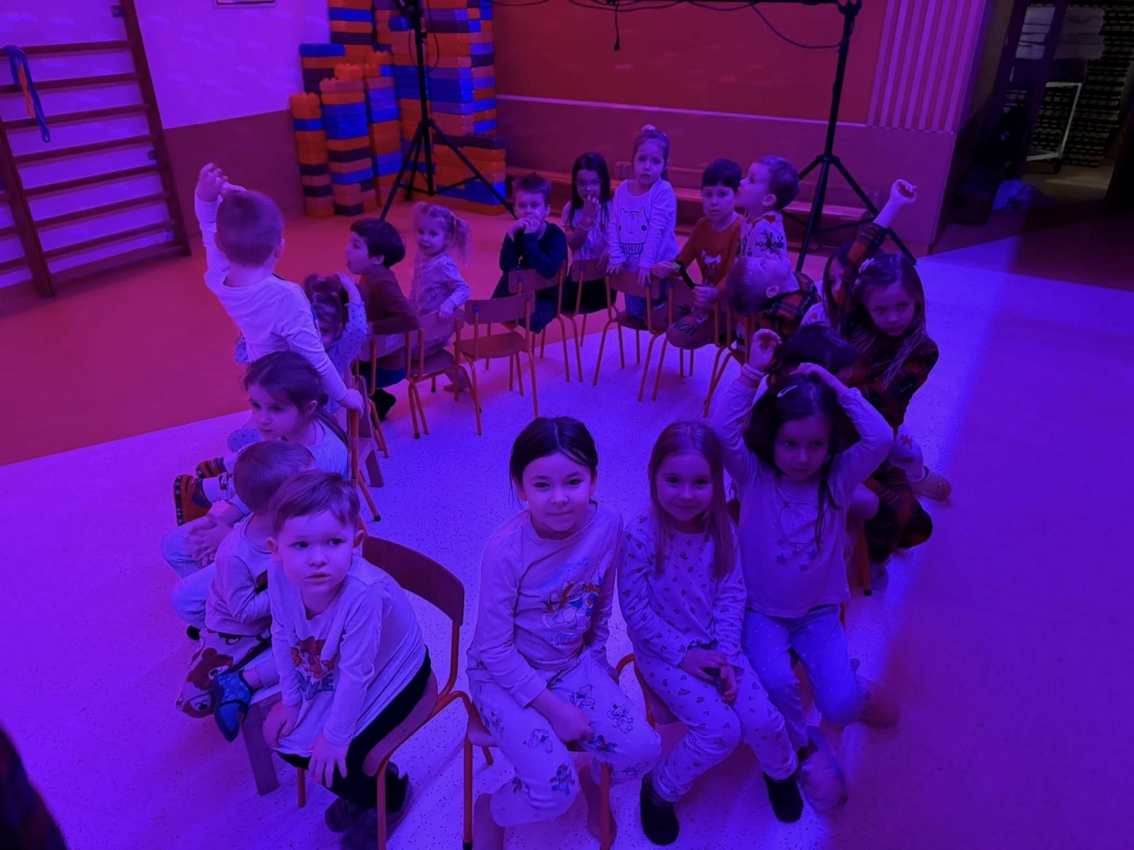 Po powrocie do budynku emocje wcale nie opadły. Zamieniliśmy kurtki na piżamy i rozpoczęliśmy drugą część wieczoru. Sale przedszkolne wypełniły się kolorowymi śpiworami i pluszakami.