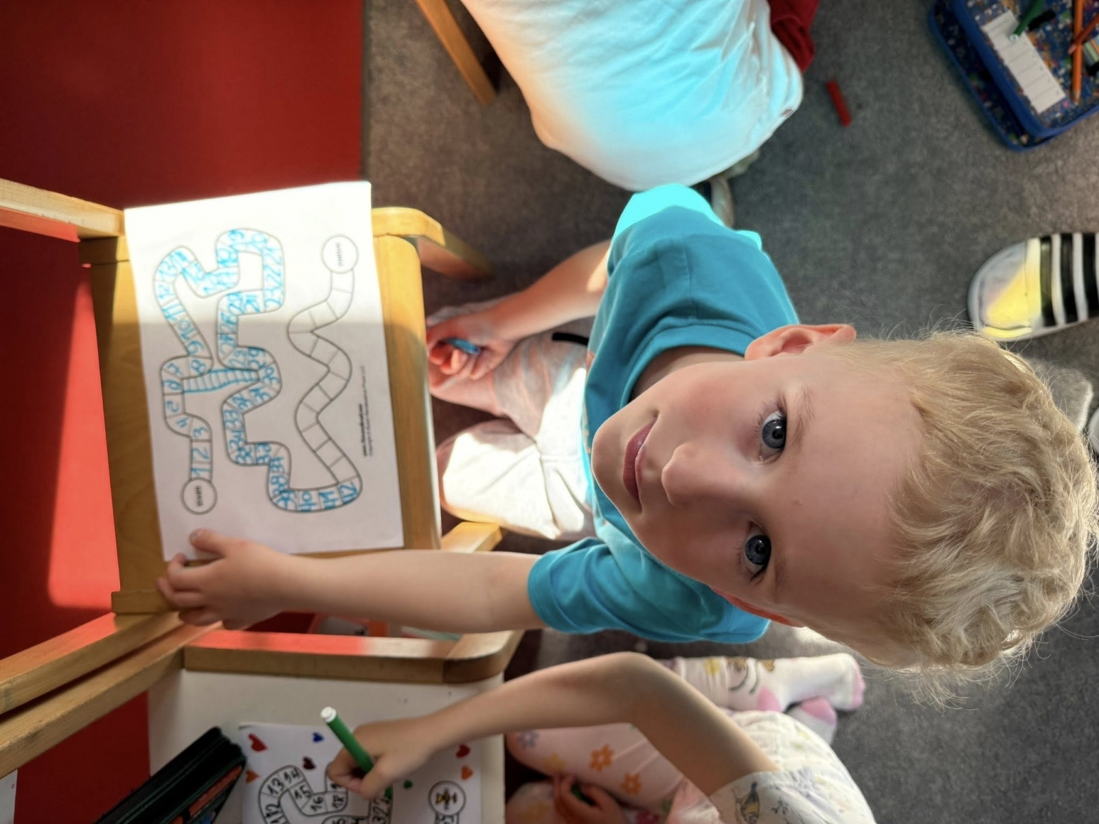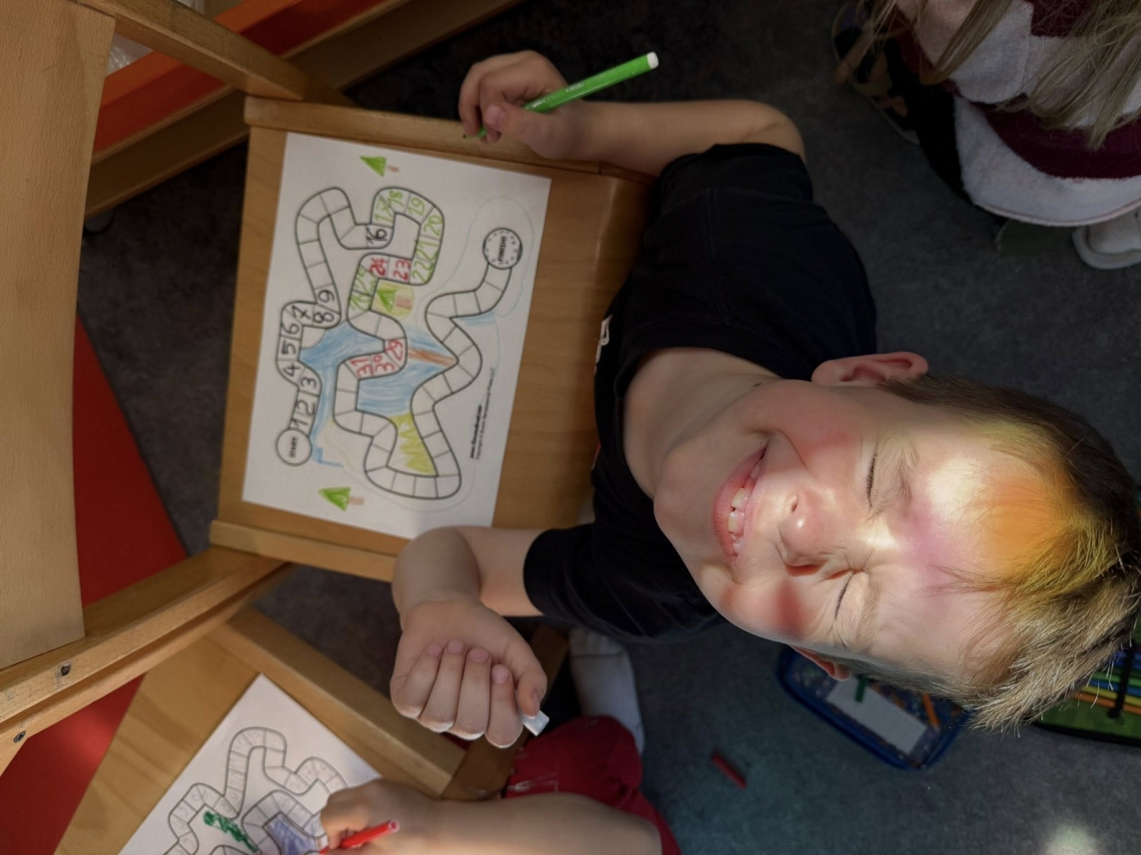 Kiedy projekty były już gotowe, przyszedł czas na najbardziej ekscytujący moment – wielkie testowanie w praktyce! Sale Żłobka, Przedszkola i Zerówki Mały Europejczyk w Elblągu wypełniły się okrzykami radości i zdrową rywalizacją. Dzieci dobierały się w pary i małe grupy, aby nawzajem poznawać swoje światy. Był to moment niezwykłej integracji. Autorzy z dumą tłumaczyli zasady kolegom i koleżankom, a gracze z ciekawością odkrywali, co przygotował dla nich autor planszy. Testowanie gier pokazało, jak wspaniale potrafimy się ze sobą bawić, szanując reguły ustalone przez rówieśników.