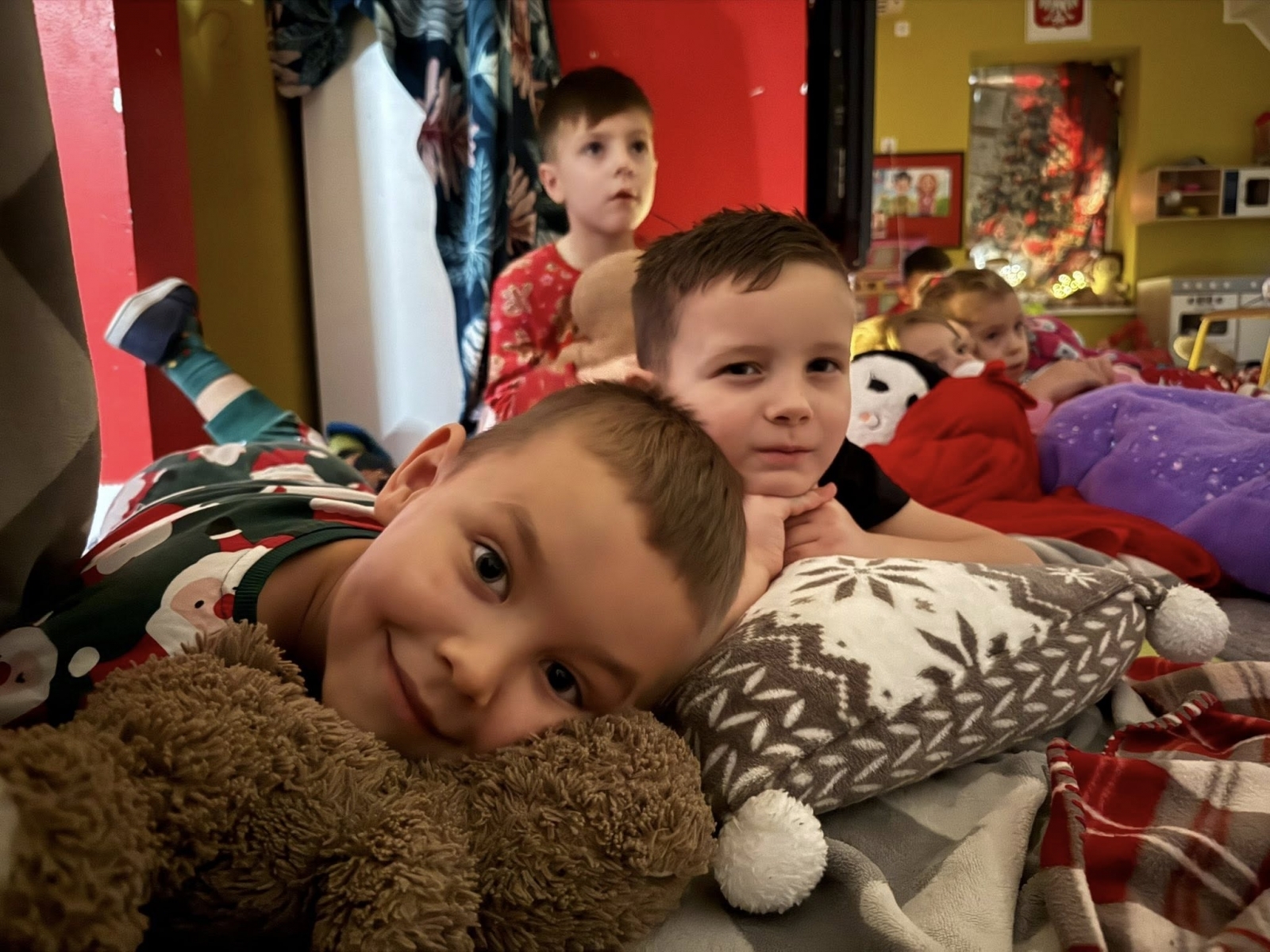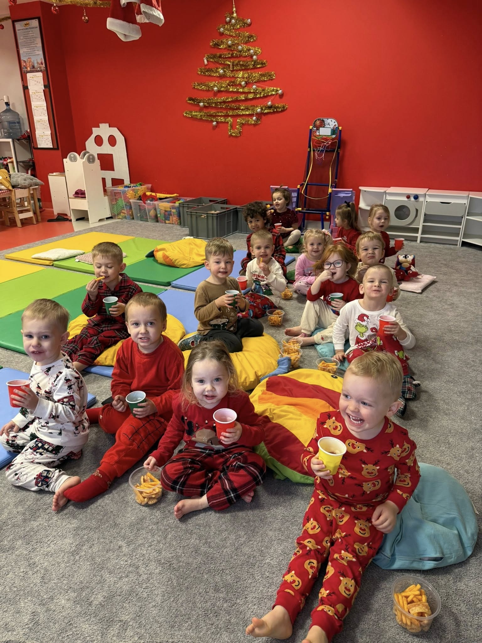 Dzisiejszy dzień upłynął nam pod znakiem „slow life”. Dzieci, zamiast w tradycyjne stroje, wskoczyły w ulubione piżamki. W całej placówce zapachniało świąteczną herbatką i gorącym kakao z piankami. Przy pierniczkach i świątecznych seansach filmowych zbieraliśmy siły na największą atrakcję tygodnia – całonocną świąteczną piżama party, która rozpoczęła się w piątek o 6:30, a zakończy dopiero w sobotnie południe!