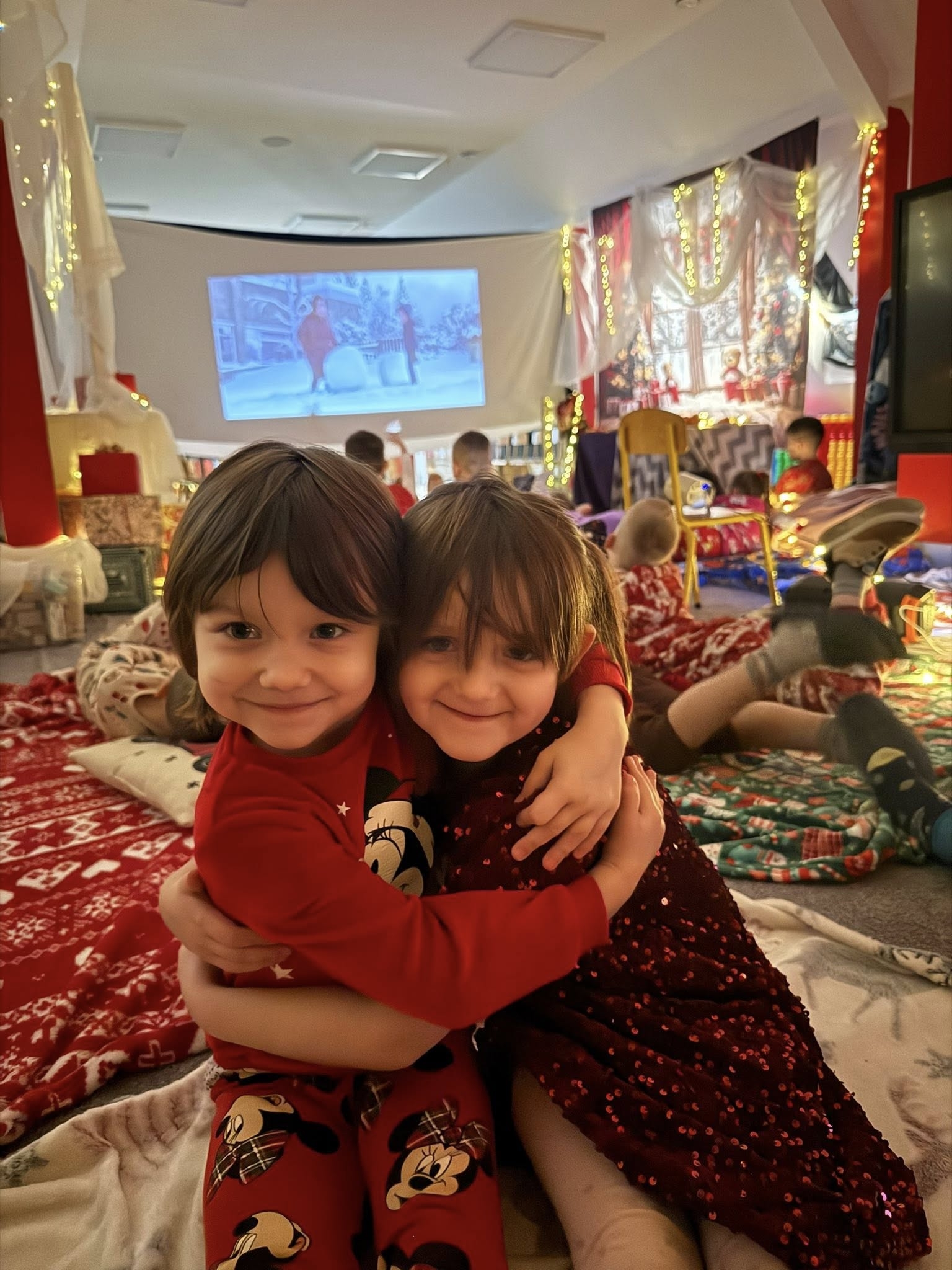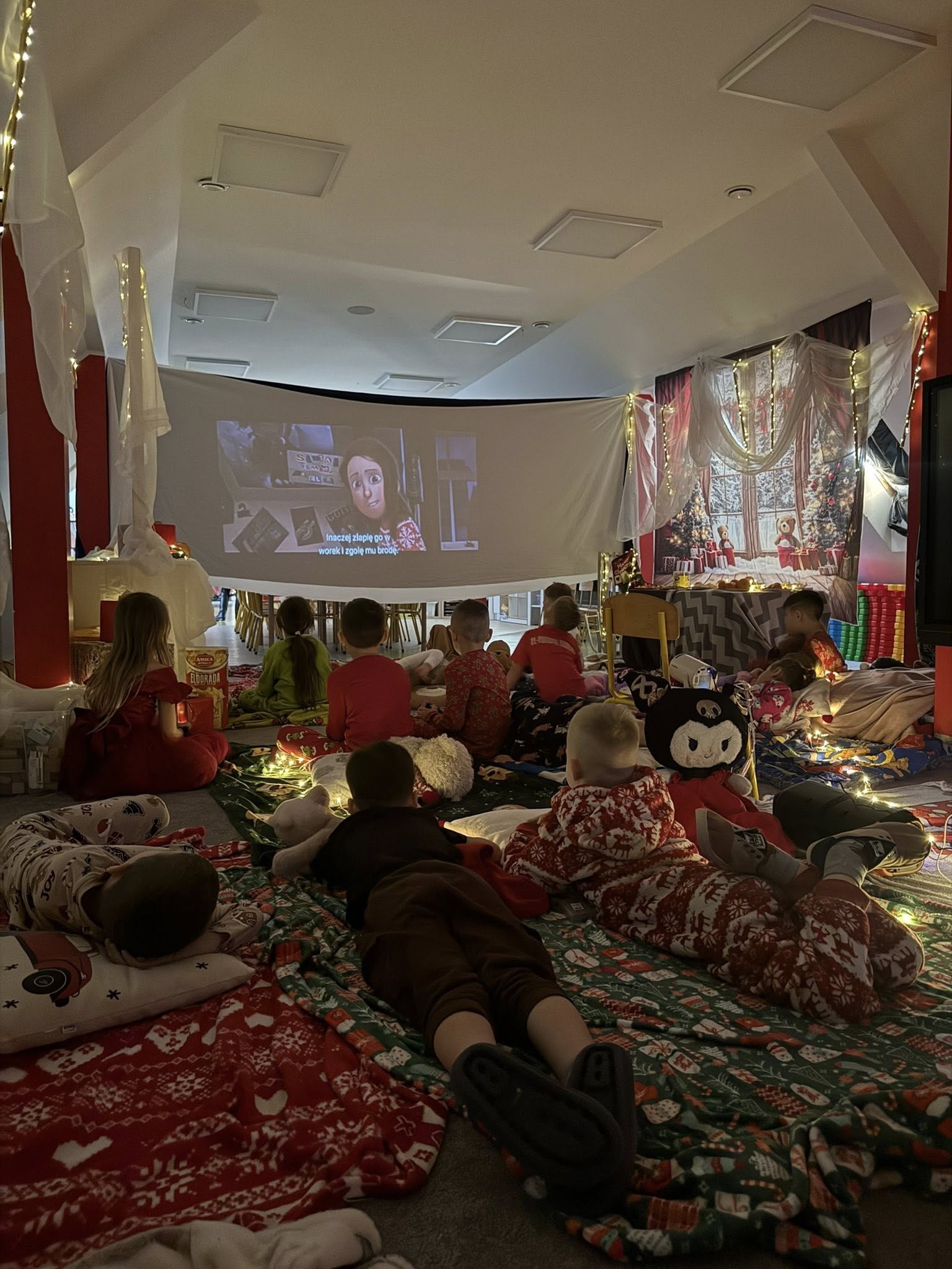 Zwieńczeniem dnia był seans w naszym przedszkolnym kinie, gdzie przy bajkowych opowieściach dzieci mogły wyciszyć się przed nadchodzącymi Świętami.