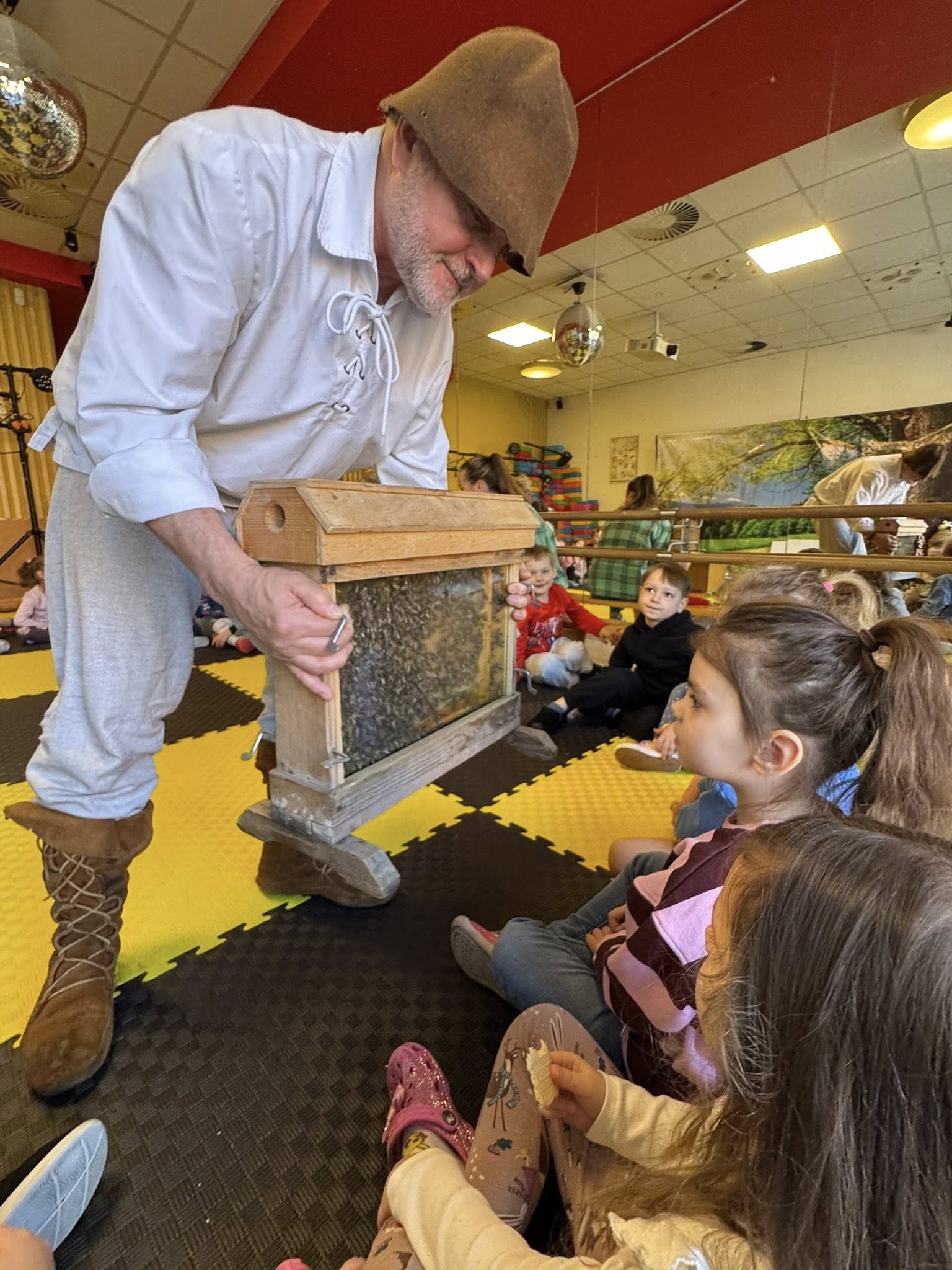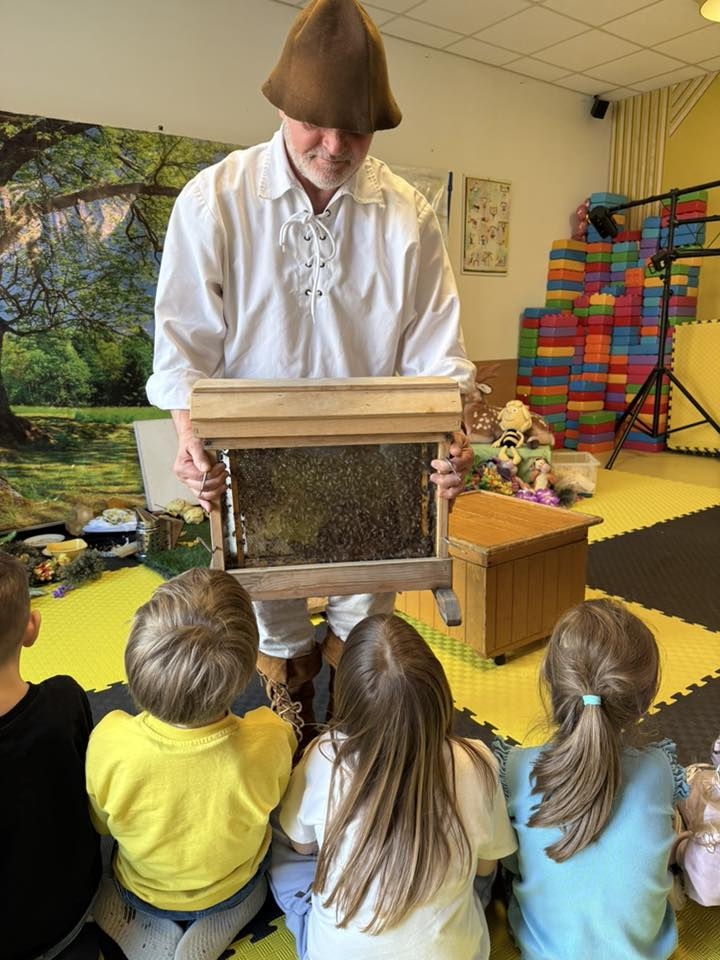 Ostatnio nasze sale wypełniły się radosnym brzęczeniem, a wszystko to za sprawą wyjątkowych zajęć poświęconych pszczołom, które stały się dla podopiecznych żywą lekcją ekologii i zdrowego stylu życia. Odwiedził nas Pan Pszczelarz wraz z pszczołami, opowiadając niezwykle ciekawe, fascynujące historie o tych wspaniałych owadach.