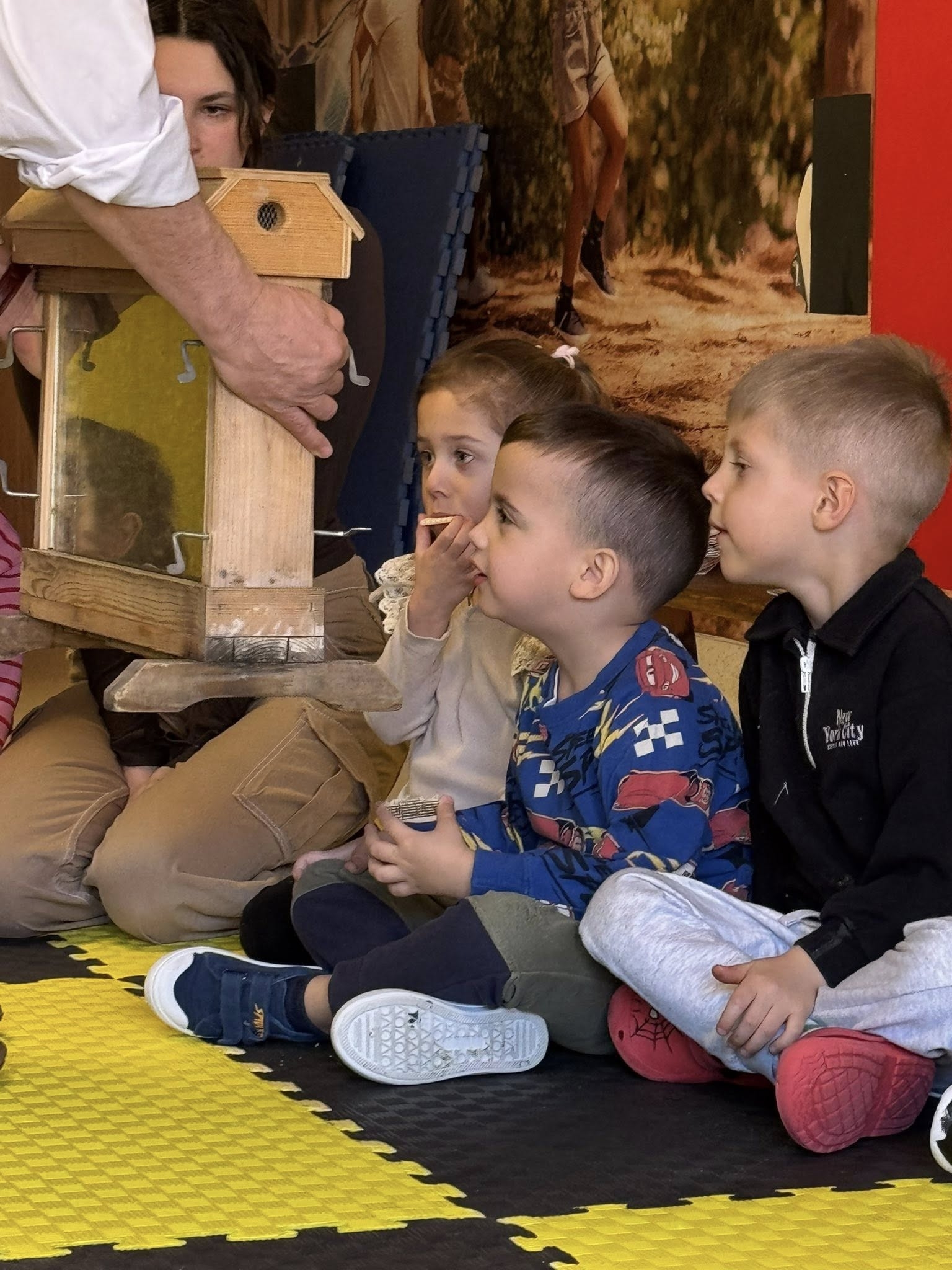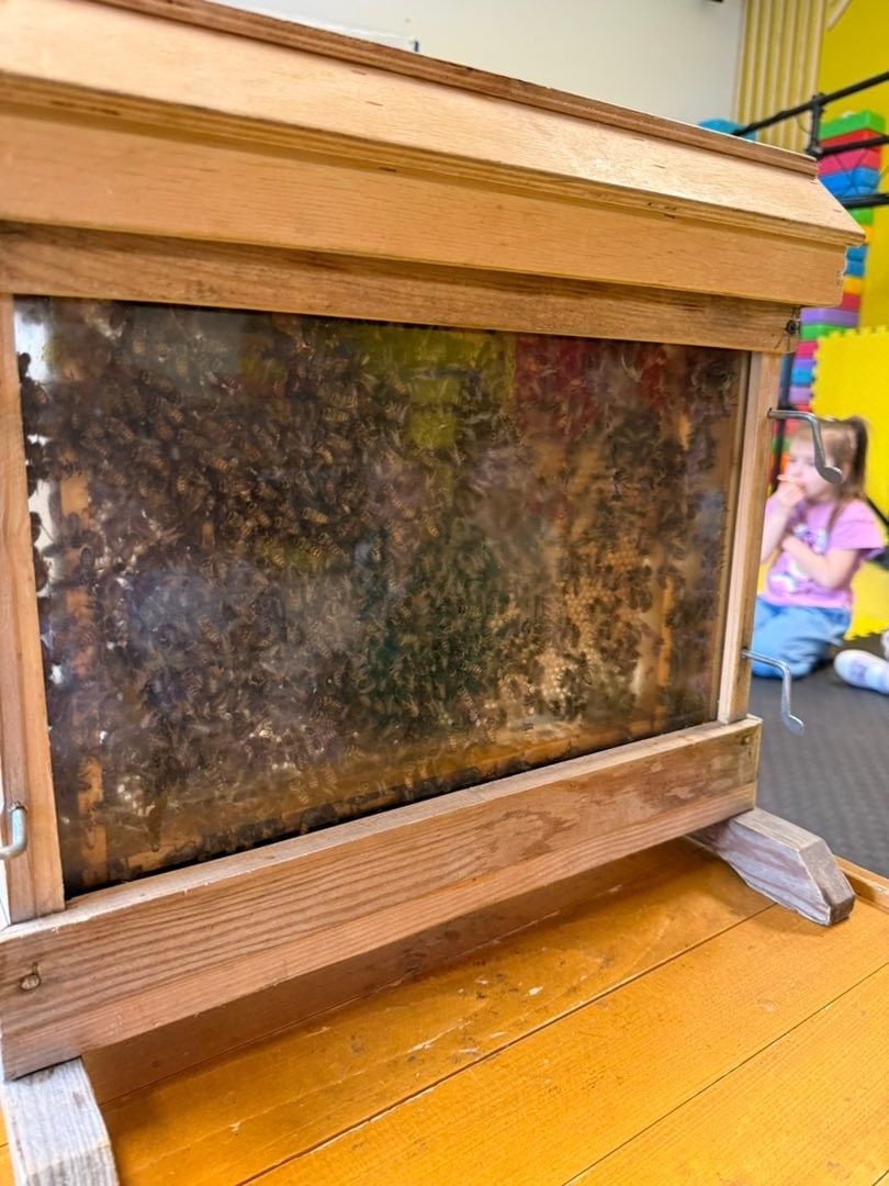 Mali odkrywcy ze Żłobka, Przedszkola i Zerówki Mały Europejczyk w Elblągu z zapartym tchem przyglądali się prawdziwym pszczołom podczas ich codziennej, mozolnej pracy, z uwagą śledząc, jak zbierają nektar i jak niesamowicie precyzyjnie współpracują ze sobą wewnątrz ula.
