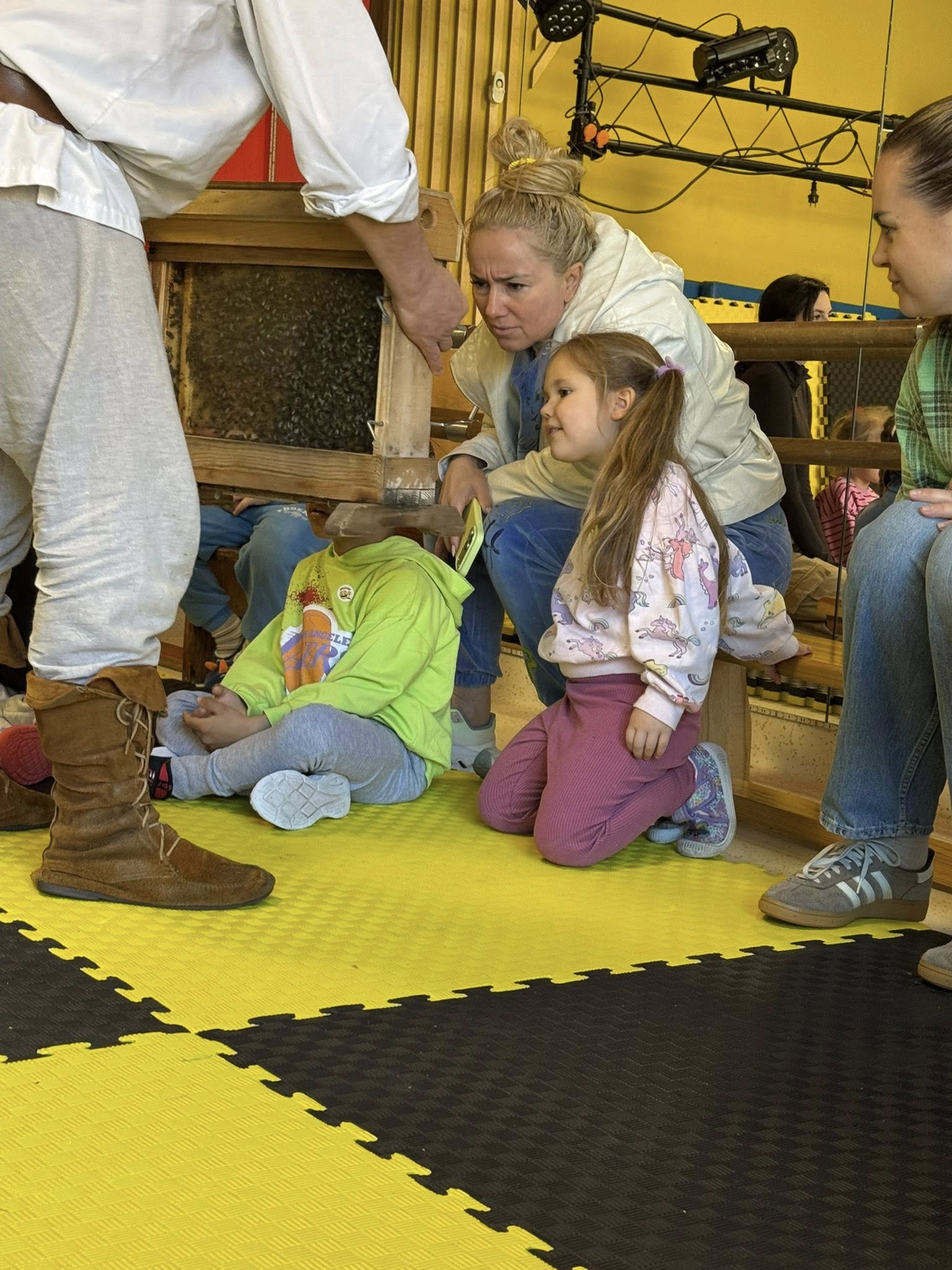 Oczywiście program spotkania nie mógłby być kompletny bez degustacji złocistego, pysznego miodu, który błyskawicznie podbił podniebienia wszystkich uczestników. Jednak to nie smakołyki, lecz możliwość bezpośredniej obserwacji wzbudziła największy zachwyt.
