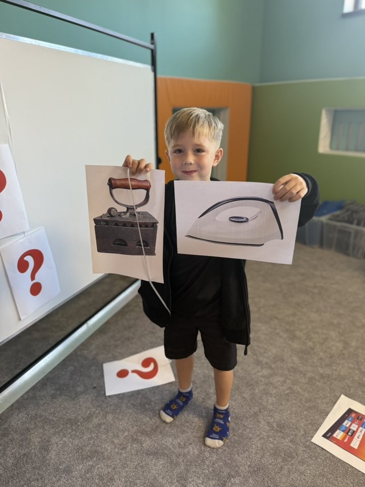 Zajęcia zostały zaplanowane tak, by łączyć edukację z zabawą. Dzieci nie tylko poznawały funkcje dawnych urządzeń, ale również szukały znanych sobie literek w ich nazwach — ćwicząc spostrzegawczość i utrwalając alfabet. Kulminacją dnia była gra „Kiedyś i teraz”, polegająca na dopasowywaniu dawnych wynalazków do ich współczesnych odpowiedników. Śmiechu i zaskoczeń nie brakowało!