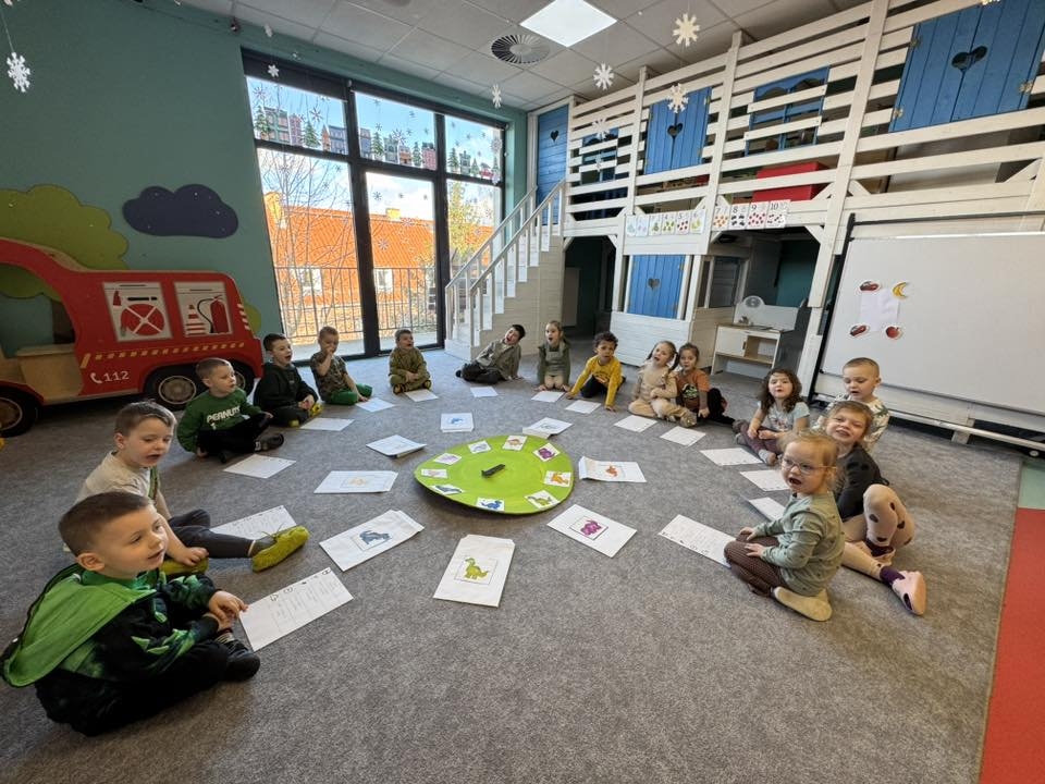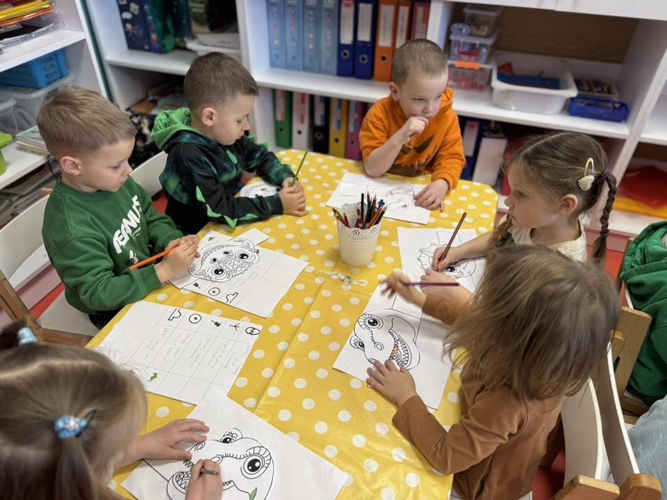 Nasze przedszkolne Maluszki ze Żłobka, Przedszkola i Zerówki Mały Europejczyk w Elblągu wyruszyły w podróż do świata łagodnych olbrzymów, skupiając się na poznawaniu różnorodności prehistorycznych stworzeń. Dzieci z ogromnym zainteresowaniem słuchały o tym, jak wyglądały dinozaury, czym się różniły i co jadły miliony lat temu. Następnie przyszedł czas na praktyczne wyzwania: łączenie jajek w pary według kolorów oraz układanie „magicznych puzzli”, z których wykluwały się małe gady.