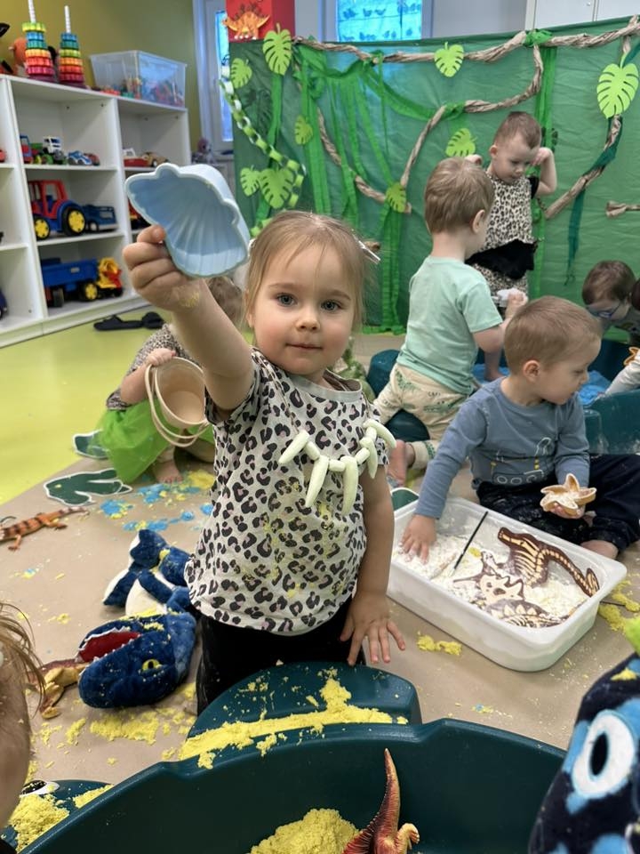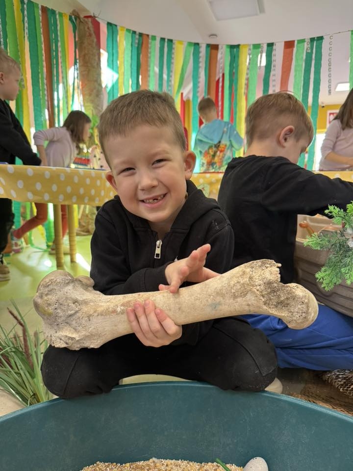 Nawet nasze najmłodsze pociechy ze żłobka Małego Europejczyka w Elblągu włączyły się do wielkiego świętowania, zamieniając się w uroczych archeologów. Z ogromnym zaangażowaniem i dziecięcą ciekawością maluszki odszukiwały oraz odkopywały szkielety dinozaurów ukryte w specjalnie przygotowanych stanowiskach.