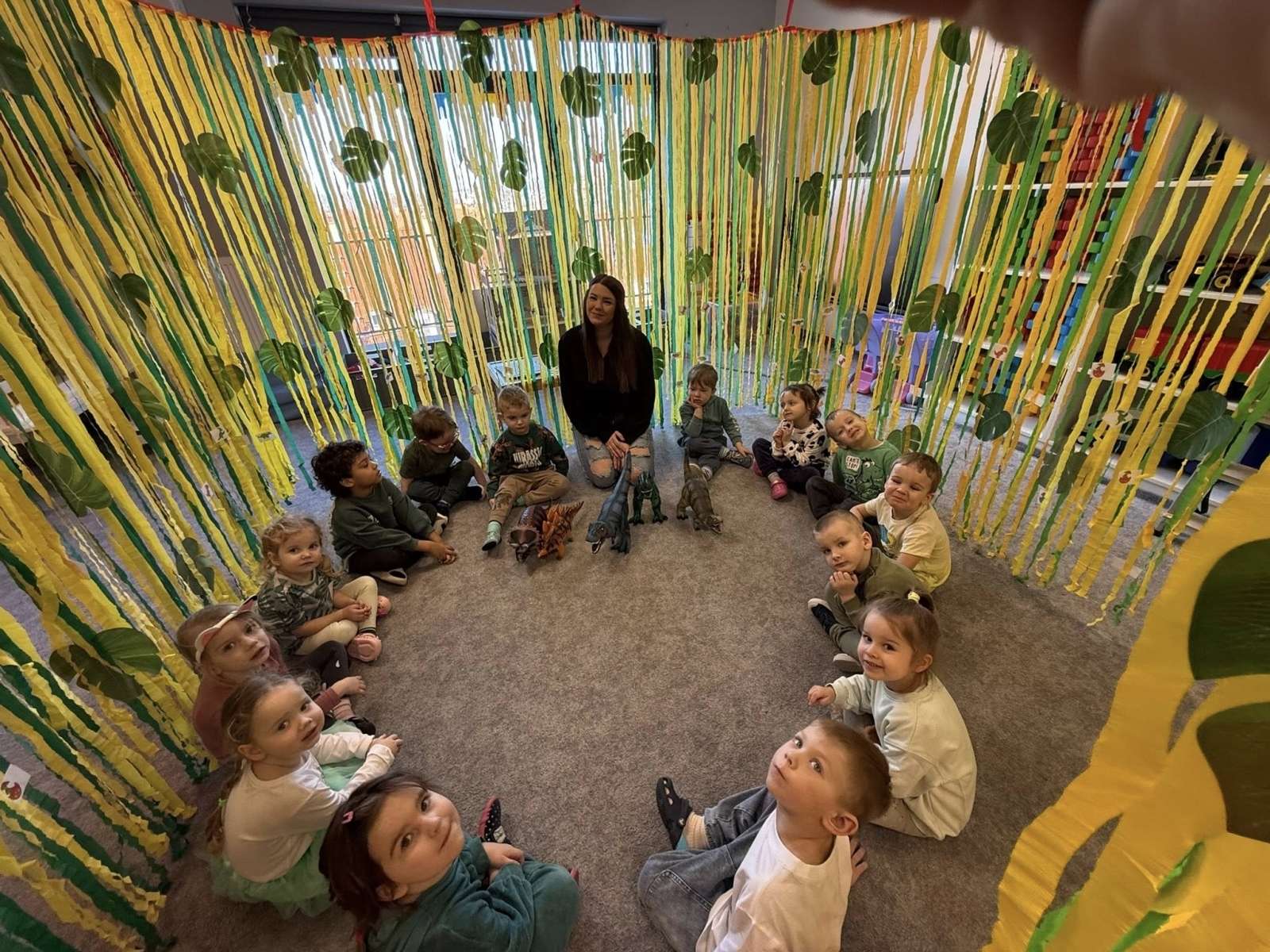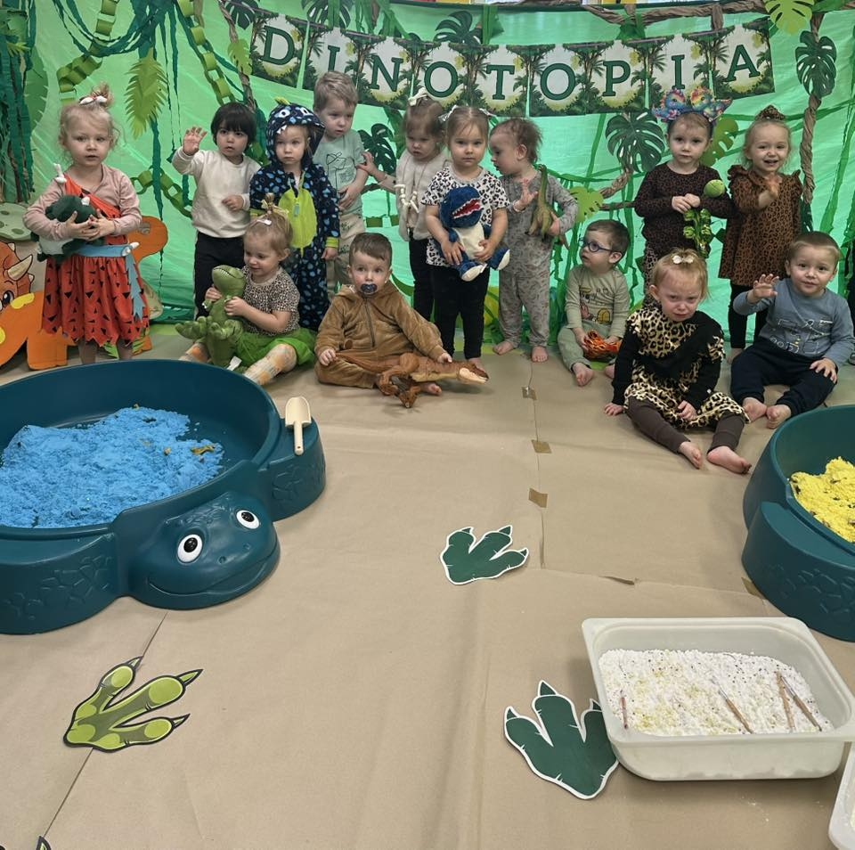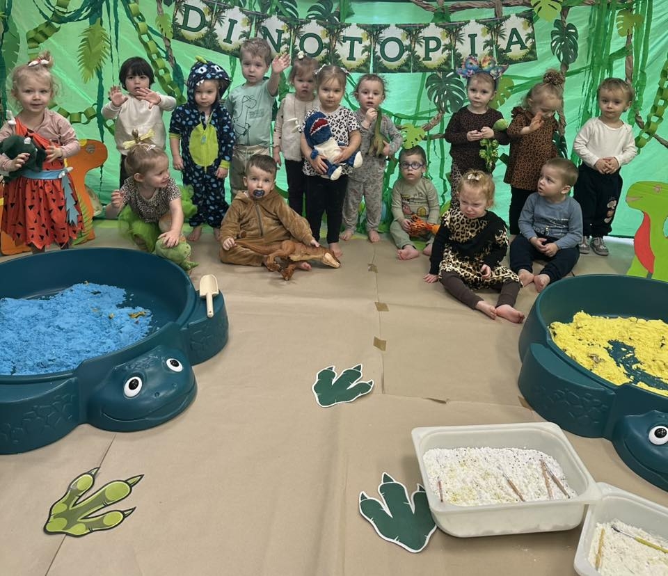 W Żłobku, Przedszkolu i Zerówce Mały Europejczyk w Elblągu wierzymy, że najlepszym nauczycielem jest dziecięca ciekawość. Dlatego zamiast tradycyjnych lekcji, przygotowaliśmy dla naszych podopiecznych prawdziwy Jurassic Park. Od żłobka aż po zerówkę – każdy metr kwadratowy naszej placówki tętnił energią ery mezozoicznej, a sale wypełniły się odgłosami radosnego odkrywania tajemnic przeszłości.