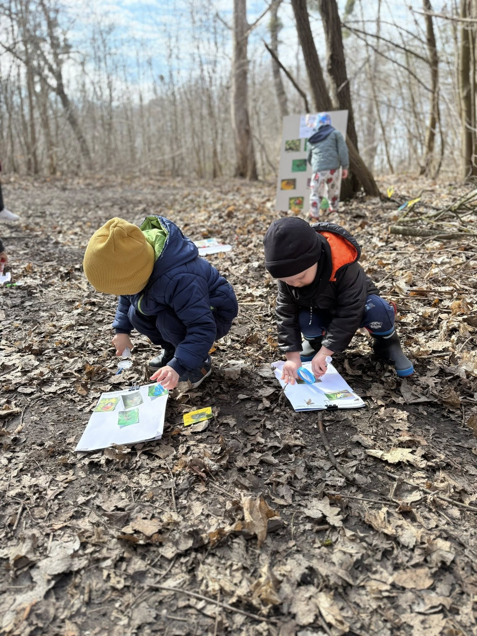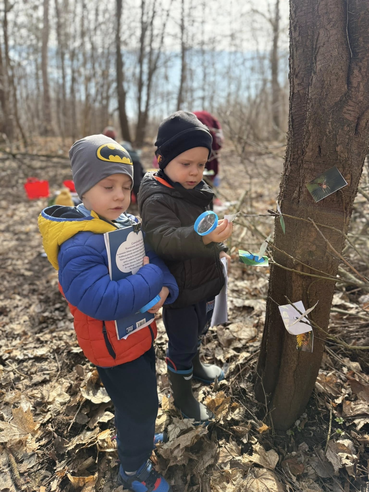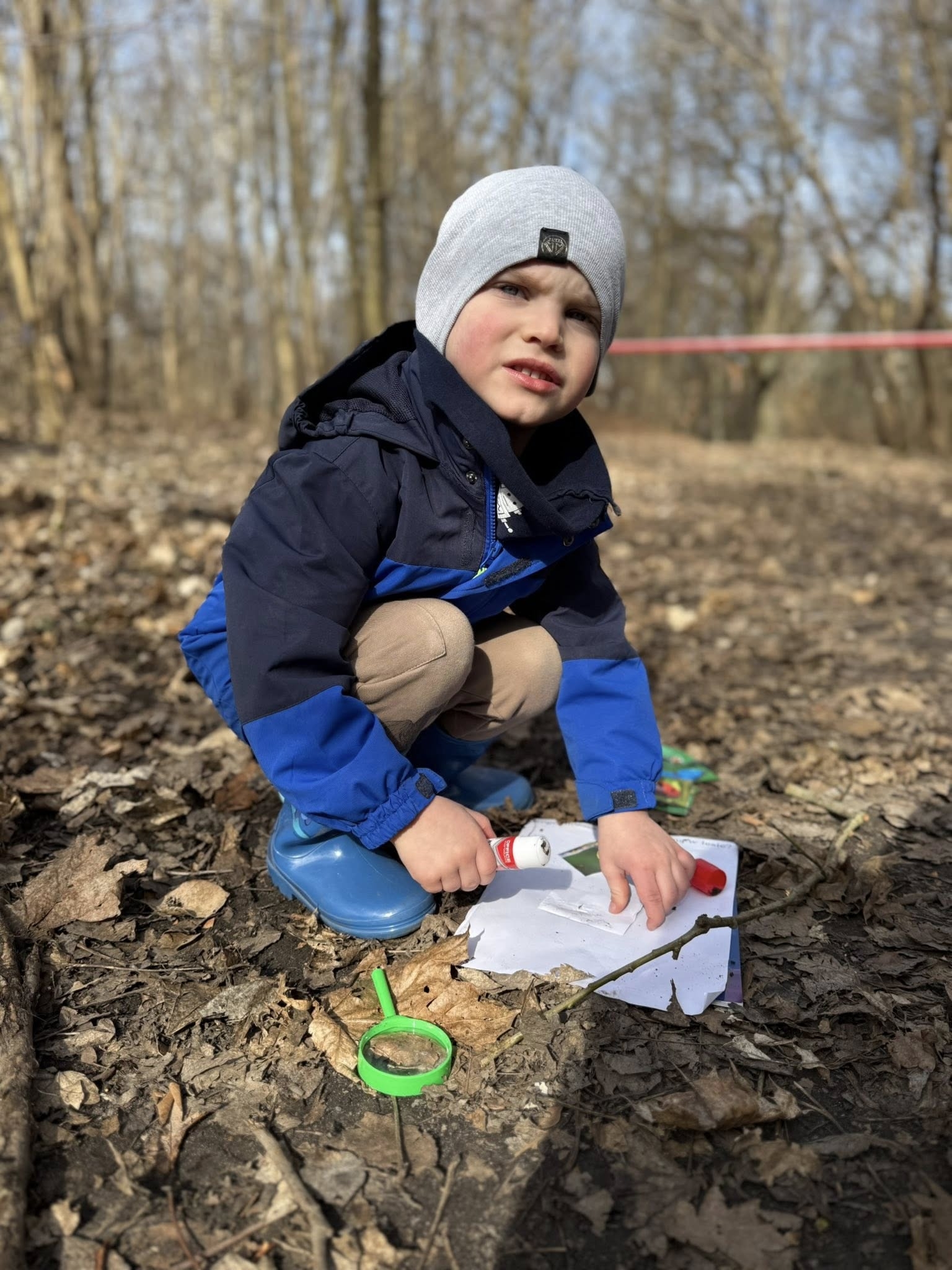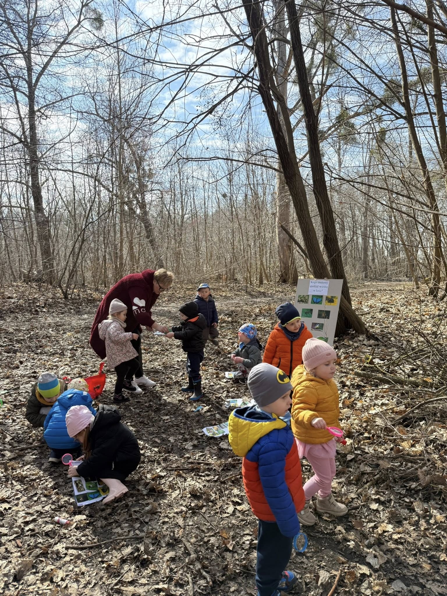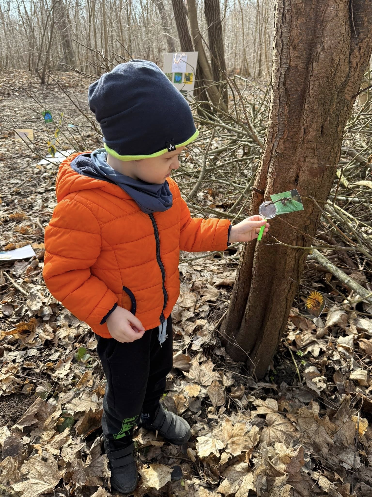 Zajęcia dydaktyczne w Żłobku, Przedszkolu i Zerówce Mały Europejczyk w Elblągu często wykraczają poza budynek, czego najlepszym przykładem była wyprawa naszych Maluszków do pobliskiego lasu. Celem tej terenowej lekcji było odkrywanie, kogo można spotkać wiosną w leśnej gęstwinie. Dzieci z ogromnym zaangażowaniem tropiły ukryte na trasie ilustracje przedstawiające żabki, koniki polne, biedronki czy pająki, a następnie precyzyjnie wyklejały nimi swoje karty pracy.