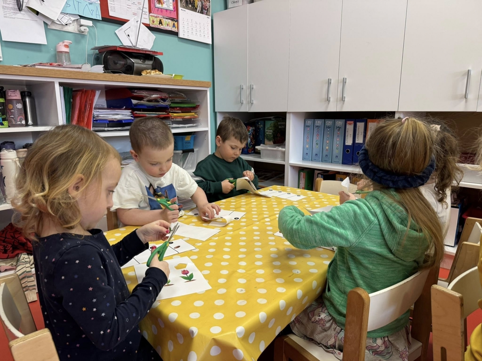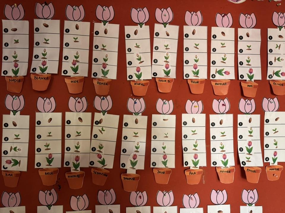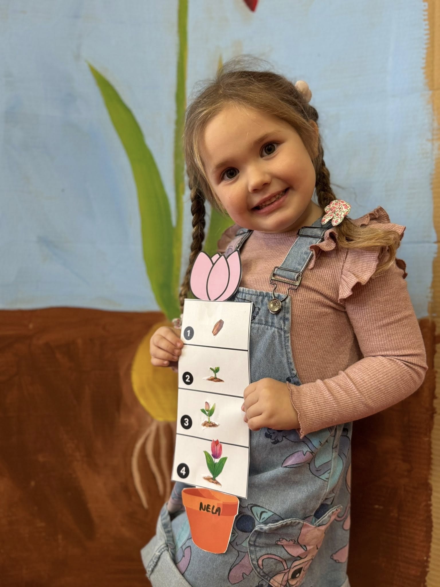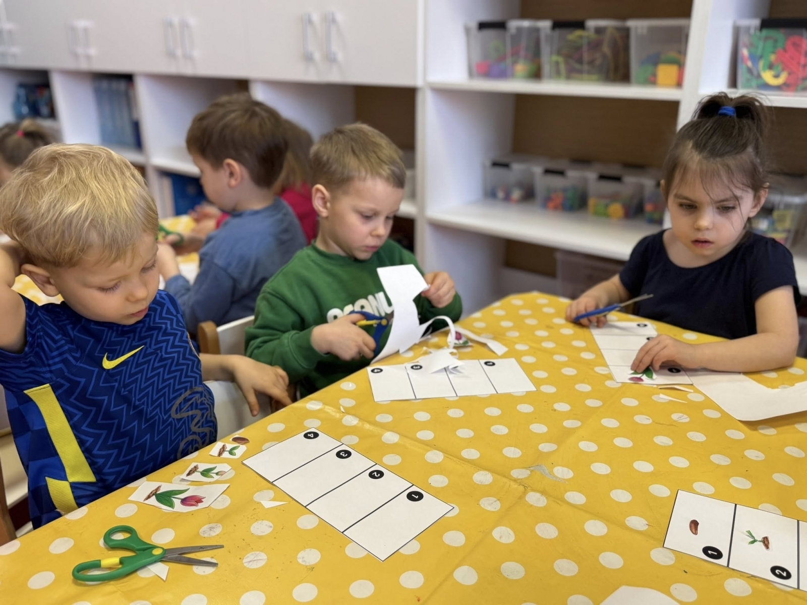 U Średniaków tydzień minął pod znakiem wszechstronnego rozwoju. Wiosenna aura sprzyjała zajęciom przyrodniczym, podczas których dzieci zgłębiały budowę kwiatów. Poznanie roli poszczególnych części rośliny było wstępem do kreatywnych warsztatów plastycznych, gdzie każdy mógł „wyhodować” własny, papierowy ogród.