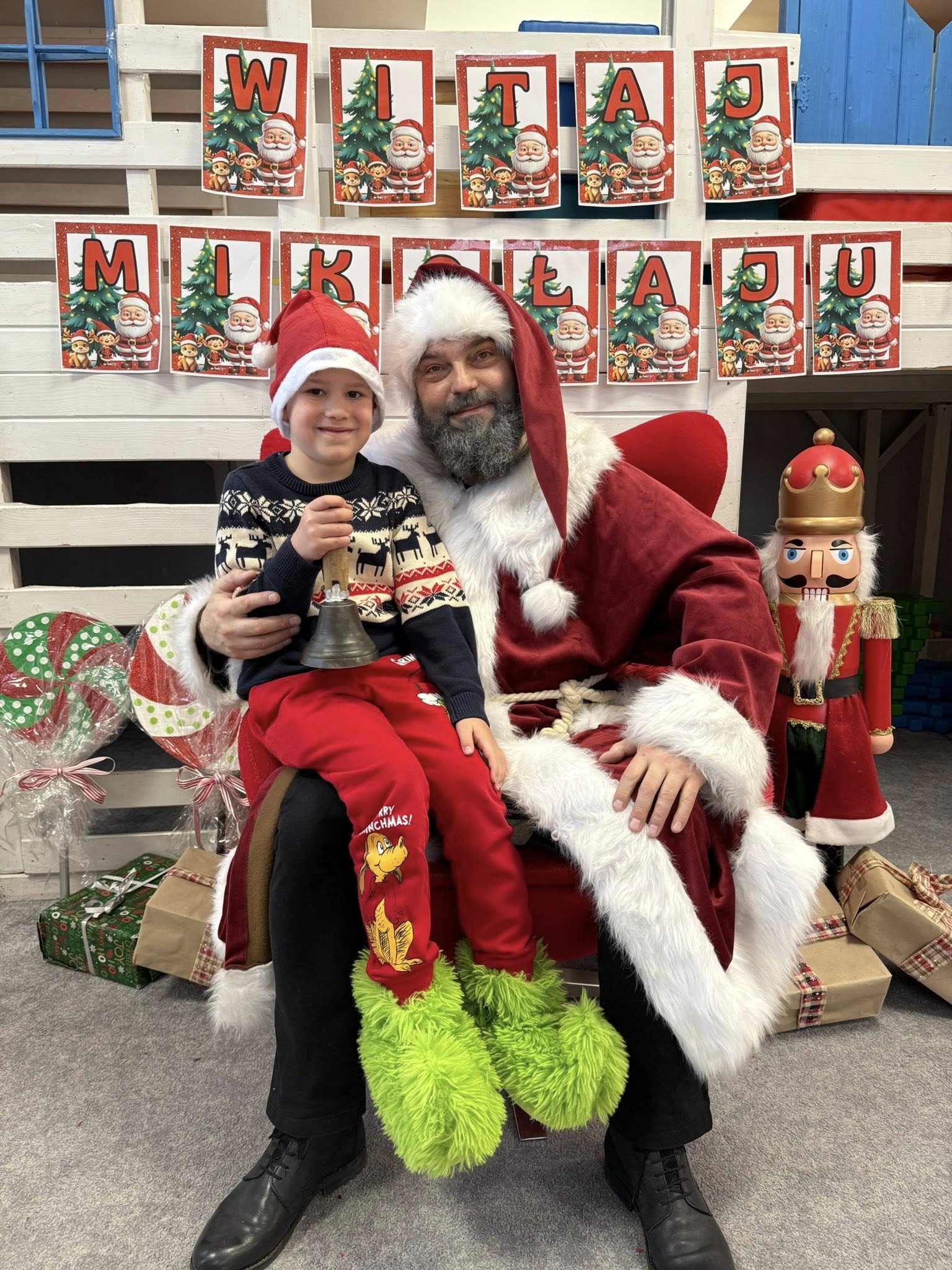 Ku ogromnemu zaskoczeniu dzieci, Mikołaj zaparkował swoje sanie na dachu przedszkola, a do sali wszedł prosto przez balkon. Maluchy przywitały go piękną piosenką, a w podziękowaniu otrzymały słodkie niespodzianki. Każde dziecko miało możliwość zrobienia sobie pamiątkowej fotografii – choć nie wszystkie odważyły się podejść tak blisko, emocji i uśmiechów nie brakowało.