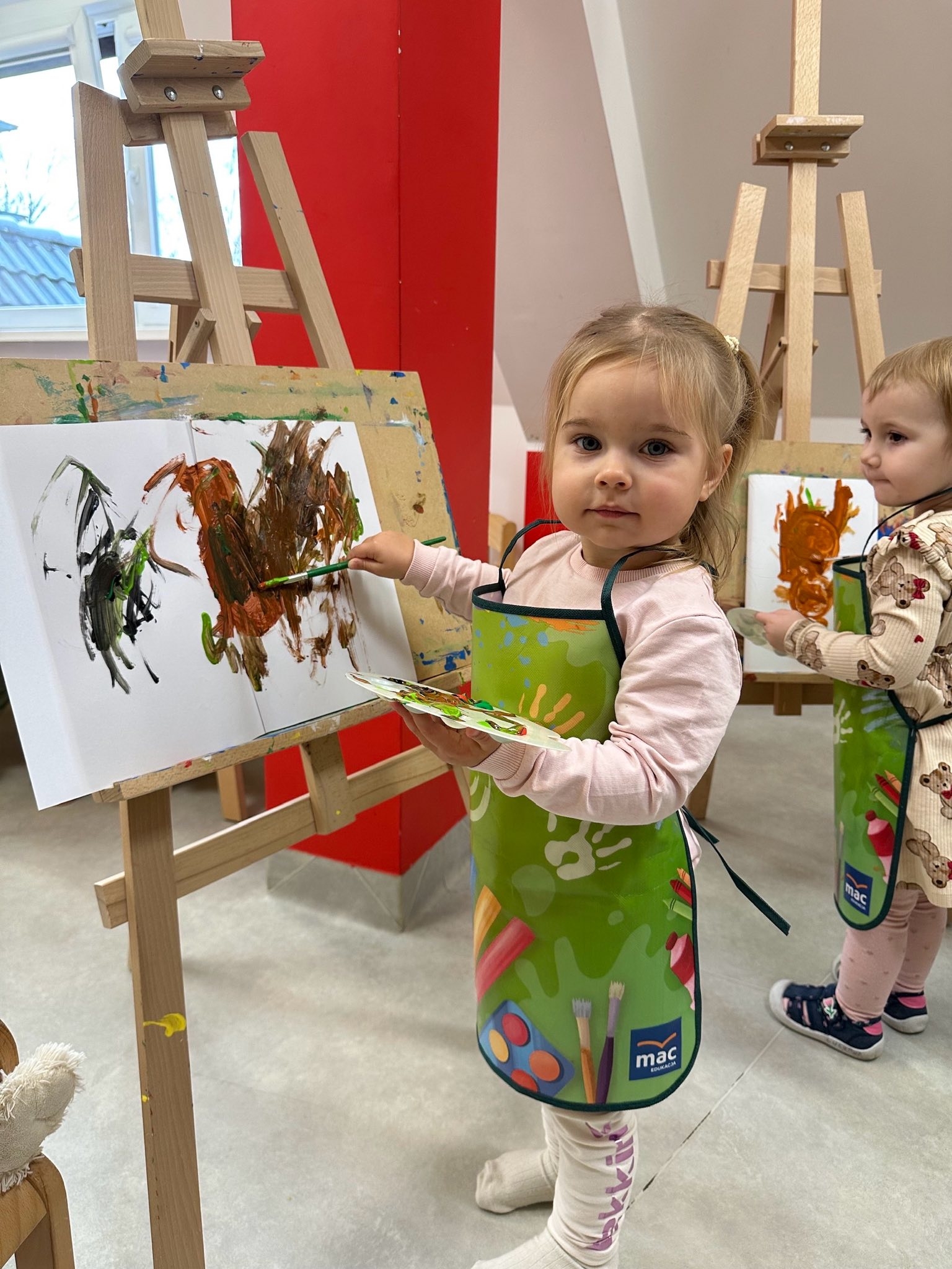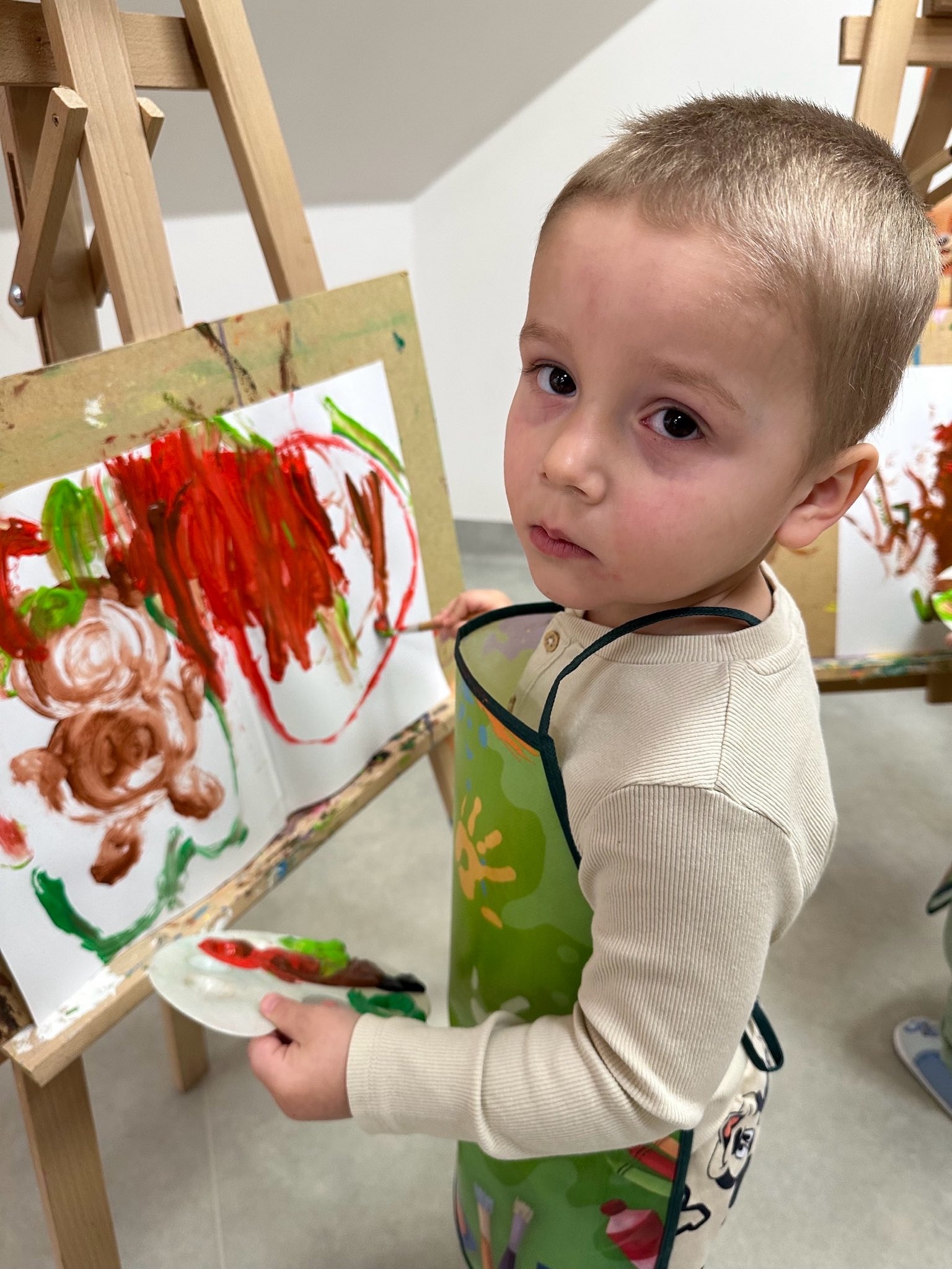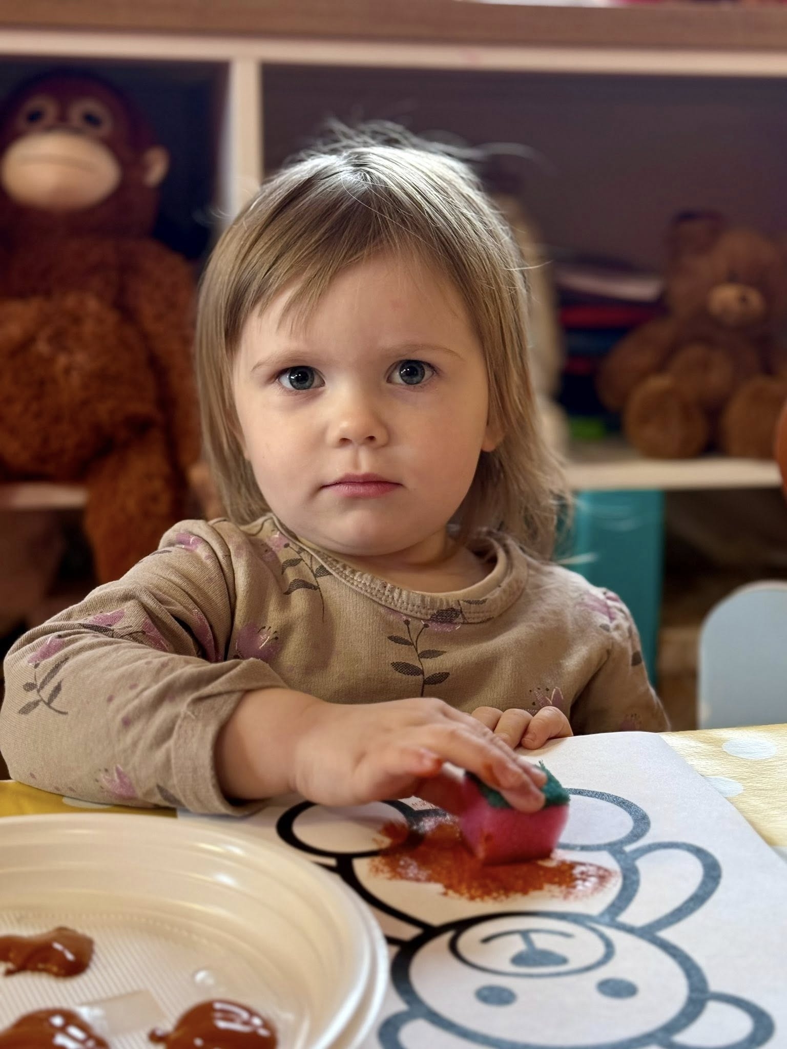 Kreatywność to jedna z najważniejszych umiejętności przyszłości, dlatego w żłobku ogromny nacisk kładzie się na zajęcia plastyczne. Dzieci malują palcami i pędzlami, lepią z plasteliny i masy solnej, tworzą proste kolaże i prace przestrzenne, a także eksperymentują z kolorami i materiałami. Dzięki temu uczą się wyrażania emocji, rozwijają sprawność manualną i odkrywają radość tworzenia. Każda praca jest doceniana, a proces twórczy staje się ważniejszy niż efekt końcowy, co buduje w dzieciach poczucie wartości i pewność siebie.