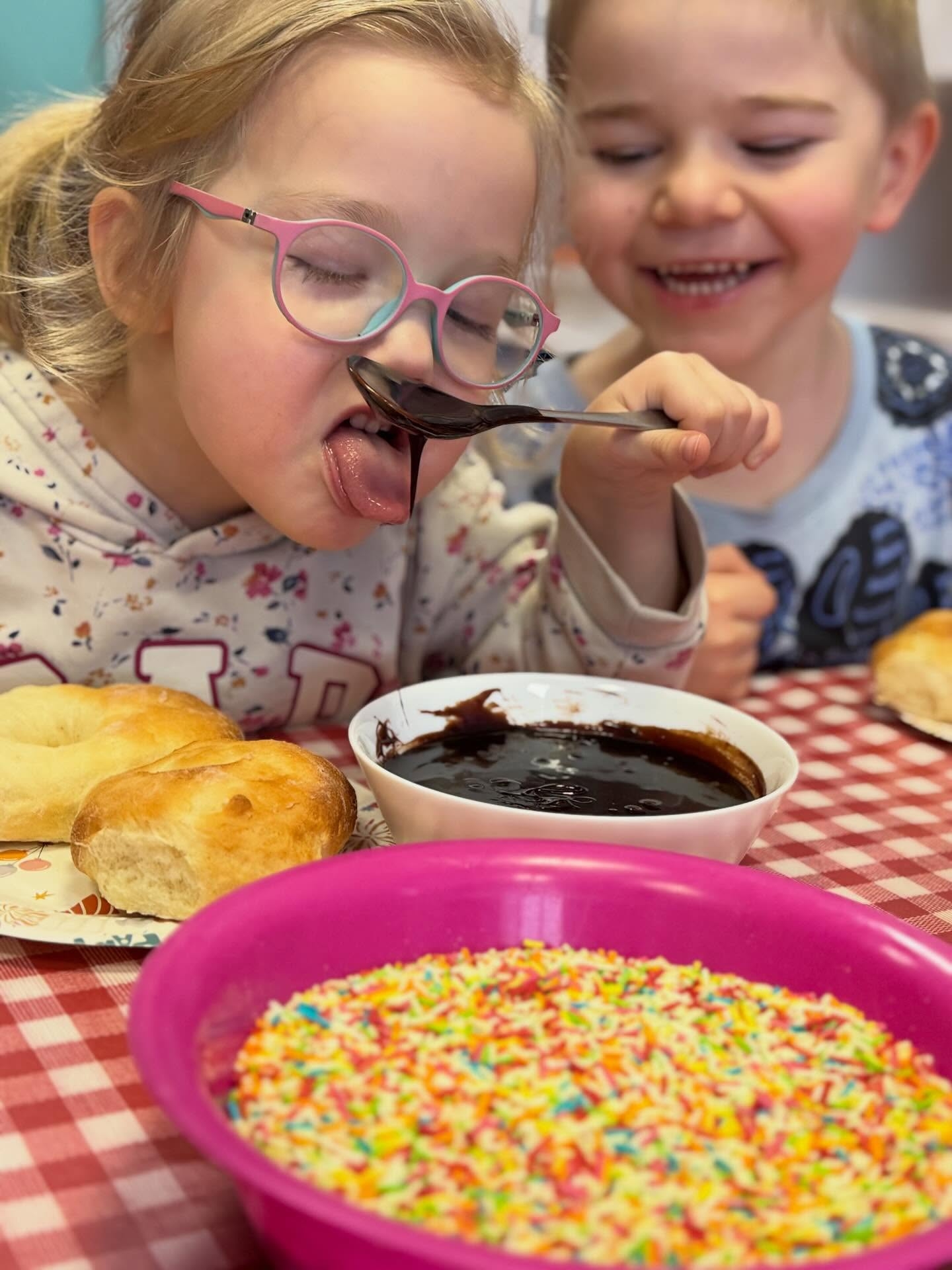 Poprzez takie warsztaty dzieci ze żłobka, przedszkola i zerówki w Elblągu uczą się sprawczości. Widzą, jak z kilku prostych składników powstaje coś pysznego i pięknego. To lekcja biologii, chemii i sztuki zamknięta w jednym, słodkim pączku z dziurką.
